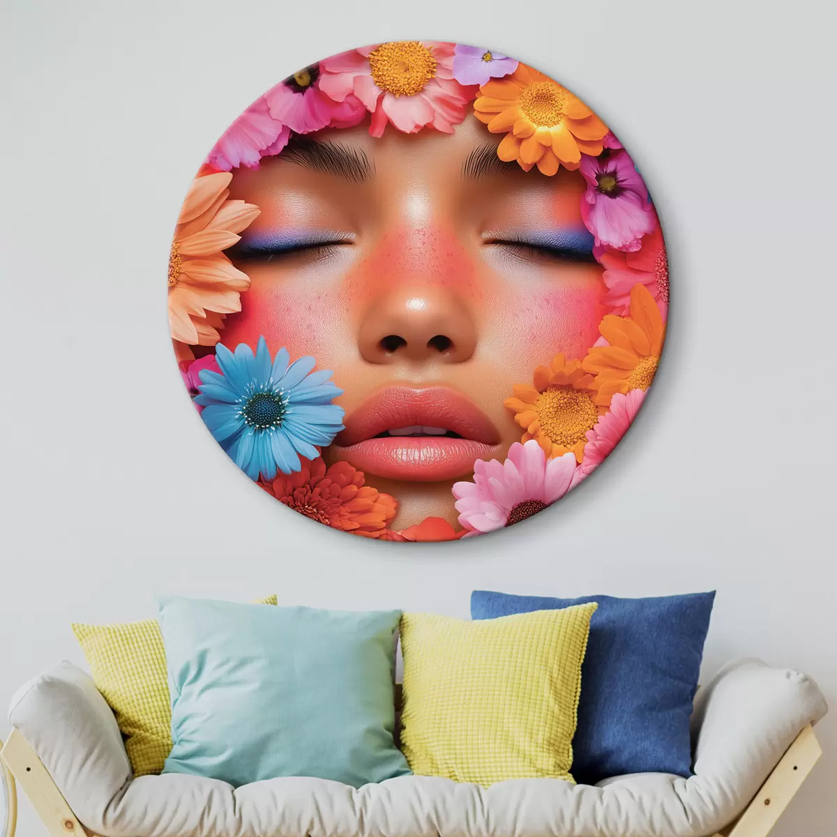 Okrągły obraz Twarz dziewczyny w kwiatach Nr r42856