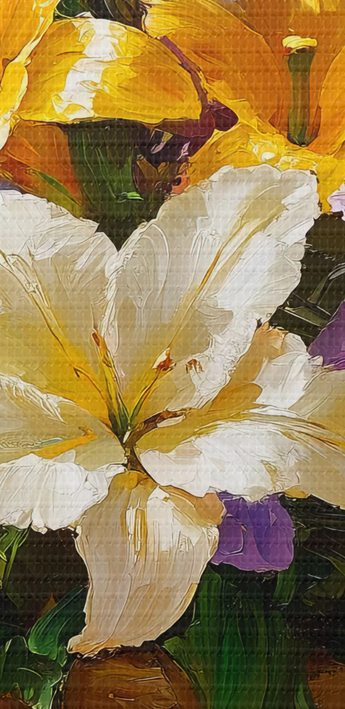 Drobny splot nici na tym płótnie przypomina powierzchnię profesjonalnych płócien artystycznych.