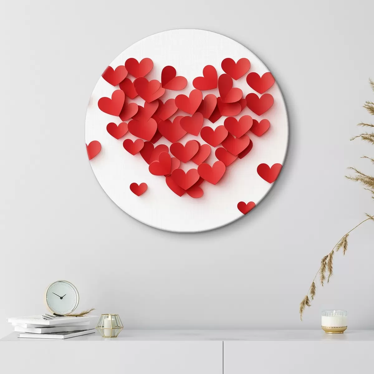 Okrągły obraz Imitacja, wolumetryczne papierowe czerwone serca Nr r42870