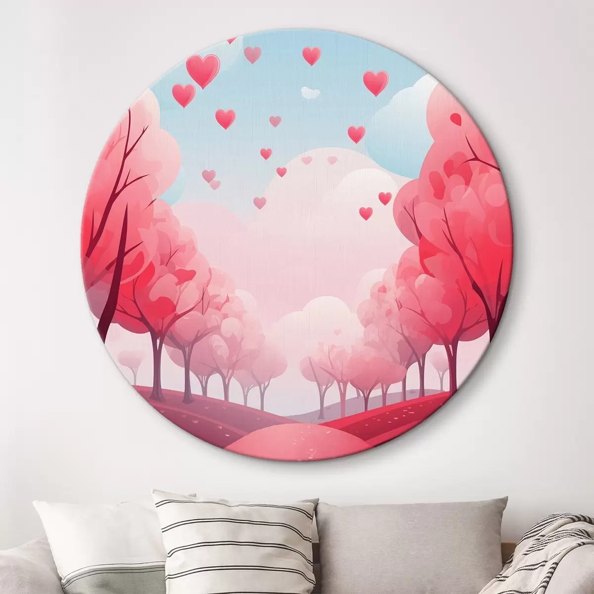 Okrągłe obrazy Aleja miłości, różowe drzewa i serca r42876