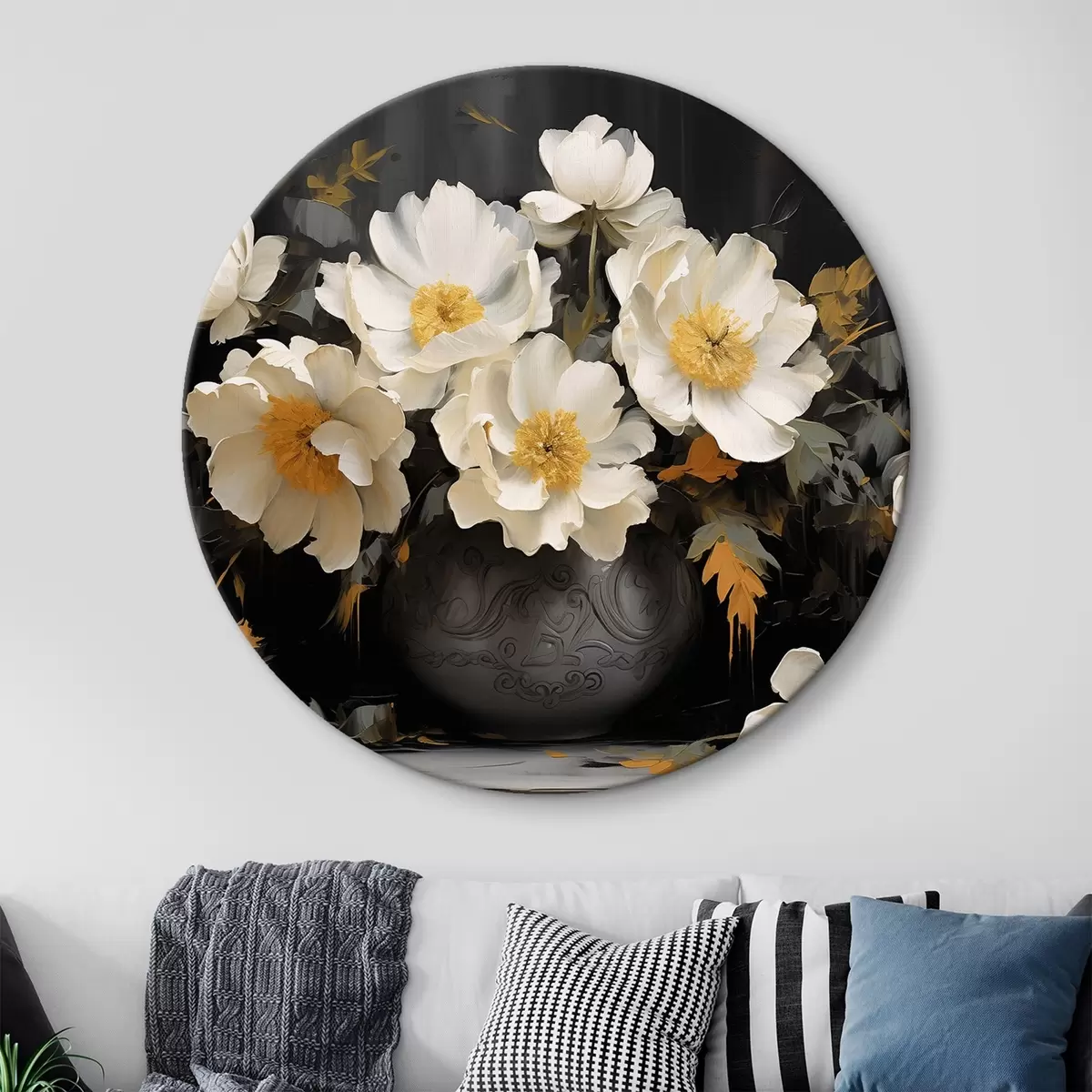 Okrągły obraz Białe piwonie w wazonie Nr r42884