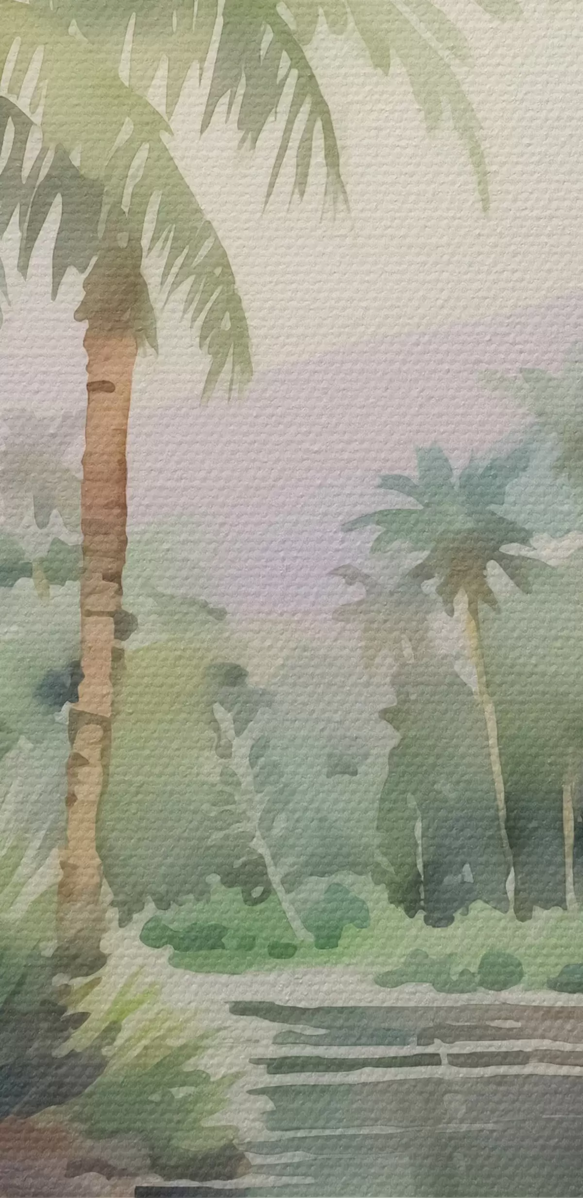 Okrągły obraz Akwarela imitująca tropikalny krajobraz Nr r42912