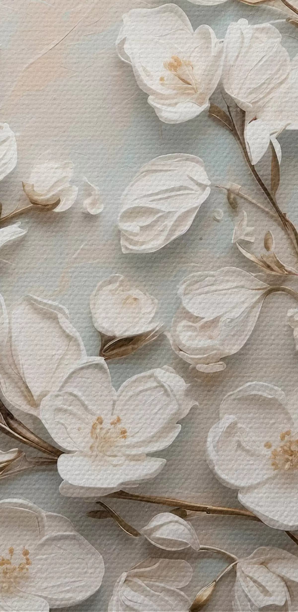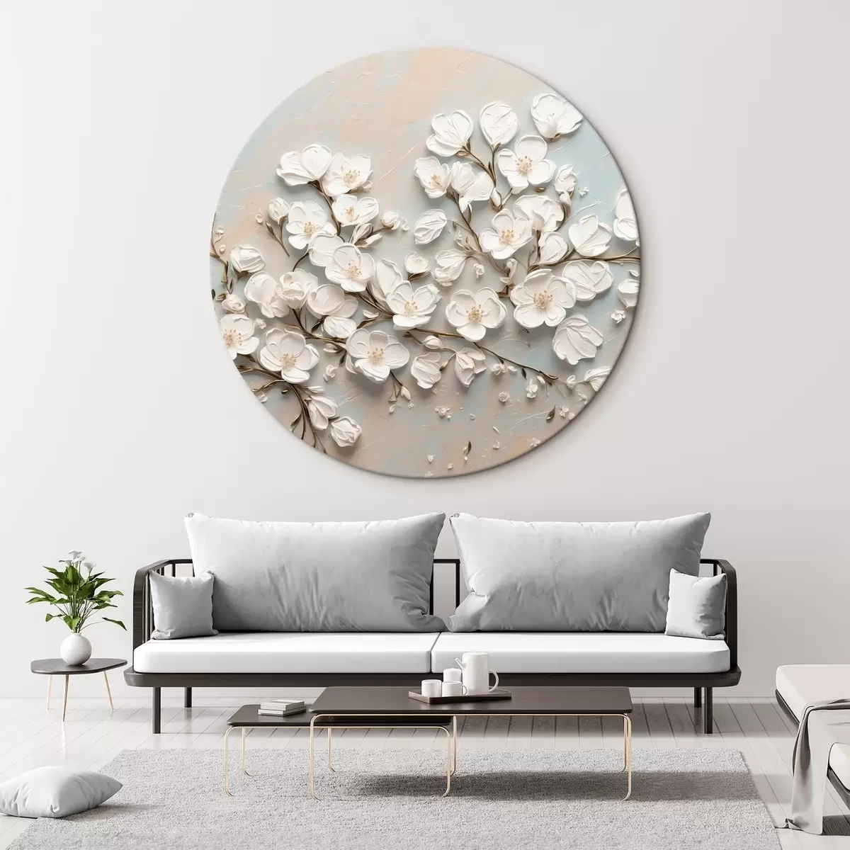 Okrągłe obrazy Białe małe kwiaty w stylu malarstwa akrylowego r42921