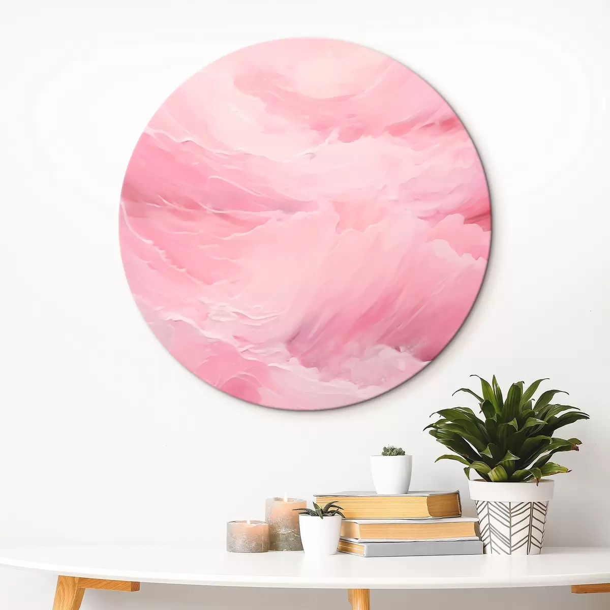 Okrągły obraz Abstrakcyjny różowy krajobraz z gładkimi formami przypominającymi fale Nr r42929