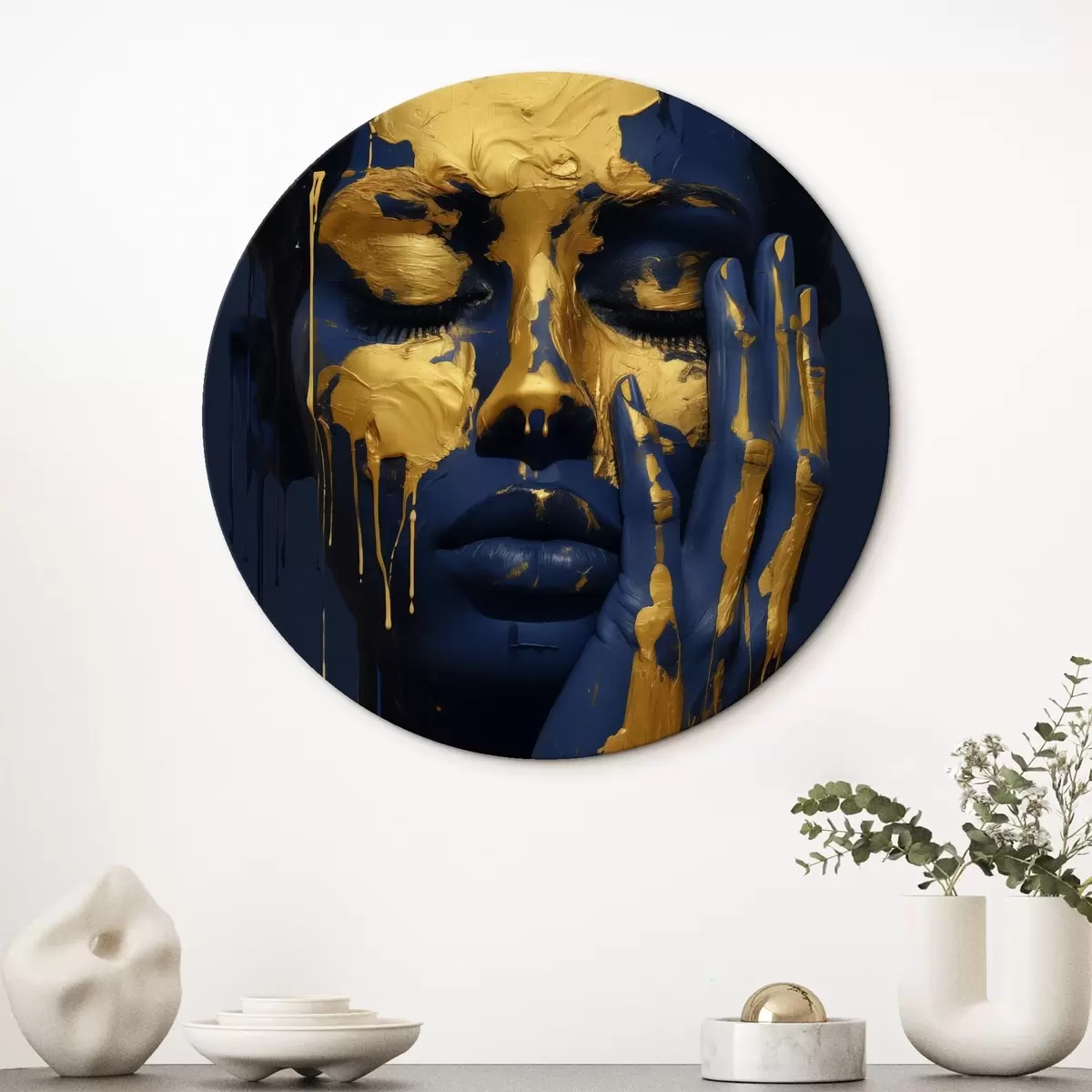Okrągły obraz Abstrakcyjny portret kobiety z głębokimi ciemnymi i ciepłymi tonami, Nr r42933