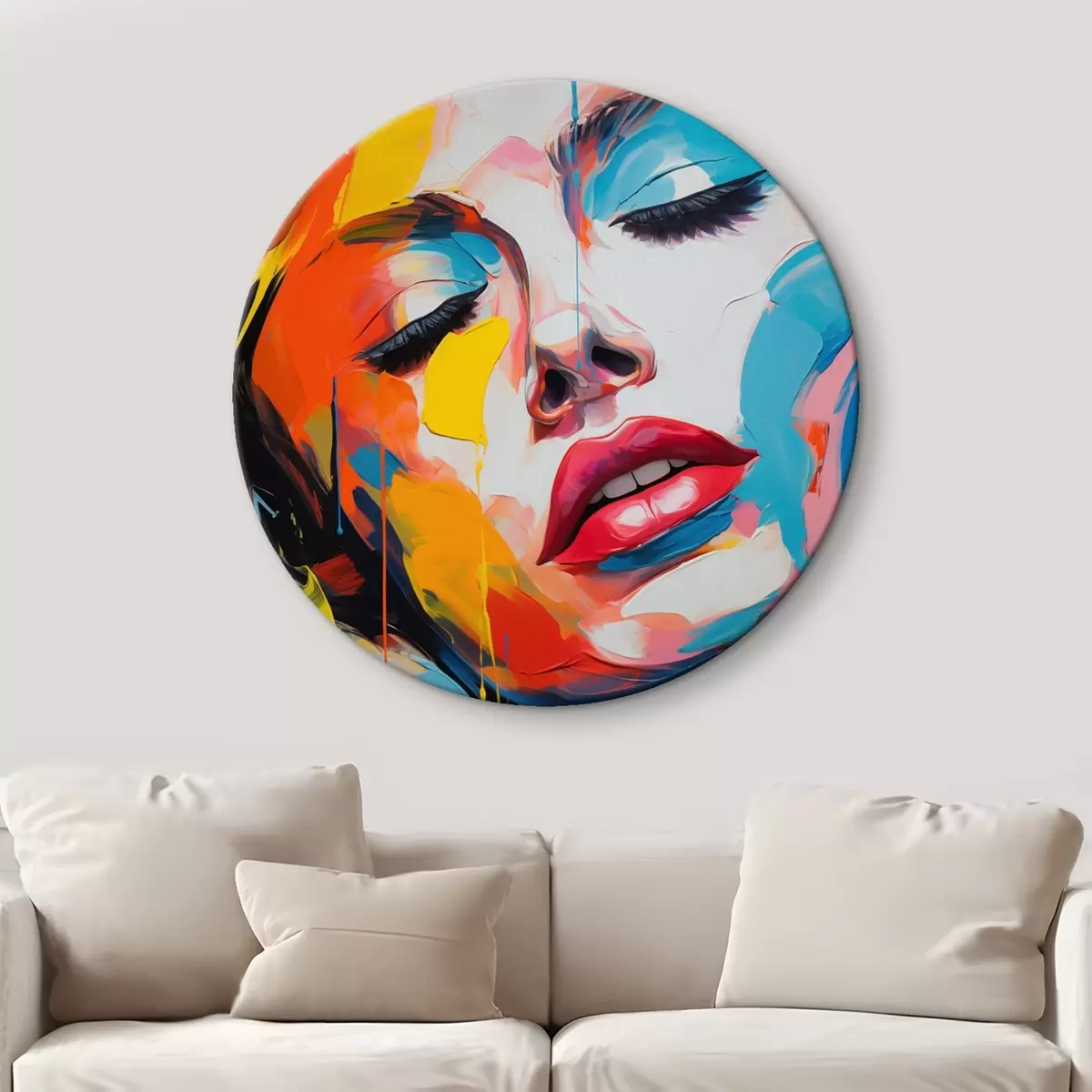Okrągły obraz Abstrakcyjny portret kobiety w wyrazistych kolorach Nr r42935
