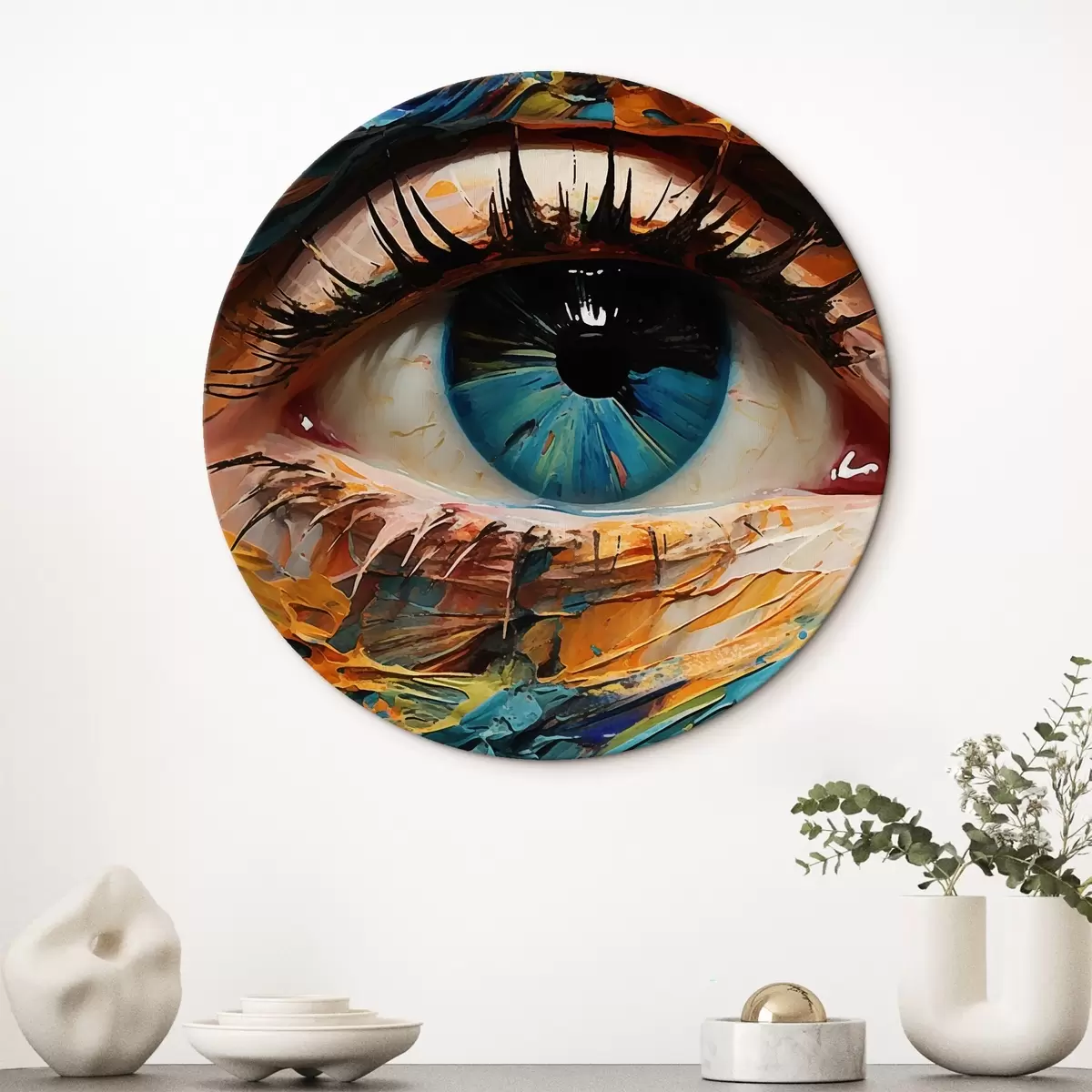 Okrągłe obrazy Abstrakcyjny portret oka w żywych kolorach, z teksturowanym efektem malarskim r42938