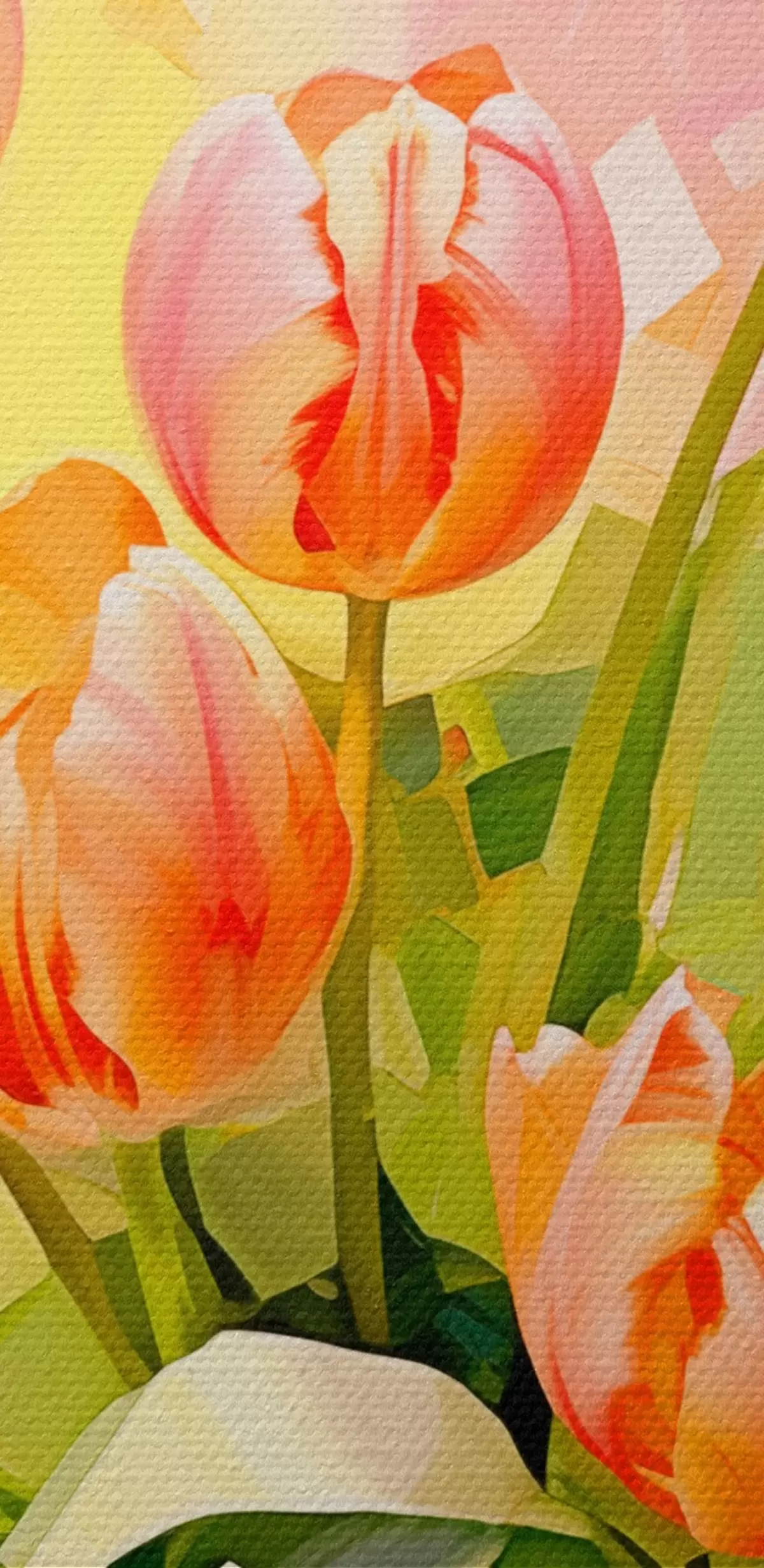 Okrągły obraz Malarska martwa natura z tulipanami w szklanym wazonie na jasnym tle Nr r42940