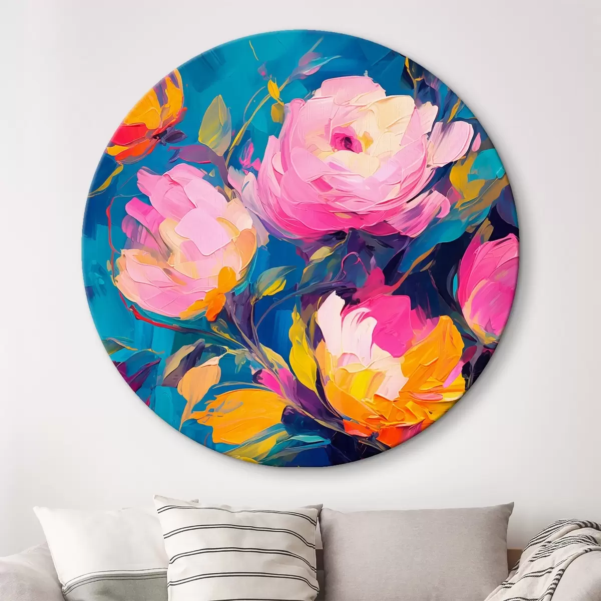 Okrągły obraz Abstrakcyjny obraz z żywymi kwiatami na niebieskim tle Nr r42941