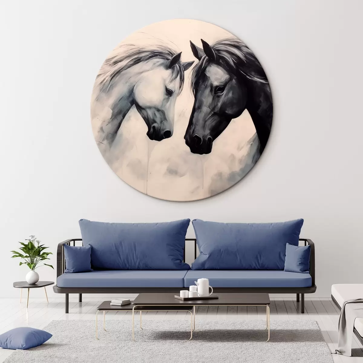Okrągły obraz Czarno-białe konie Nr r42955