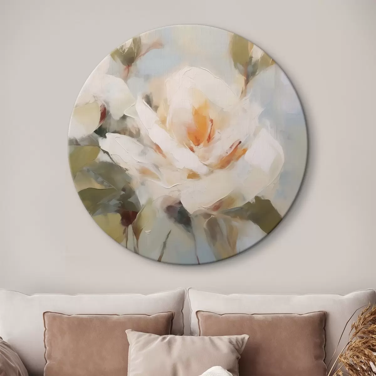Okrągły obraz Białe kwiaty abstrakcja Nr r42963