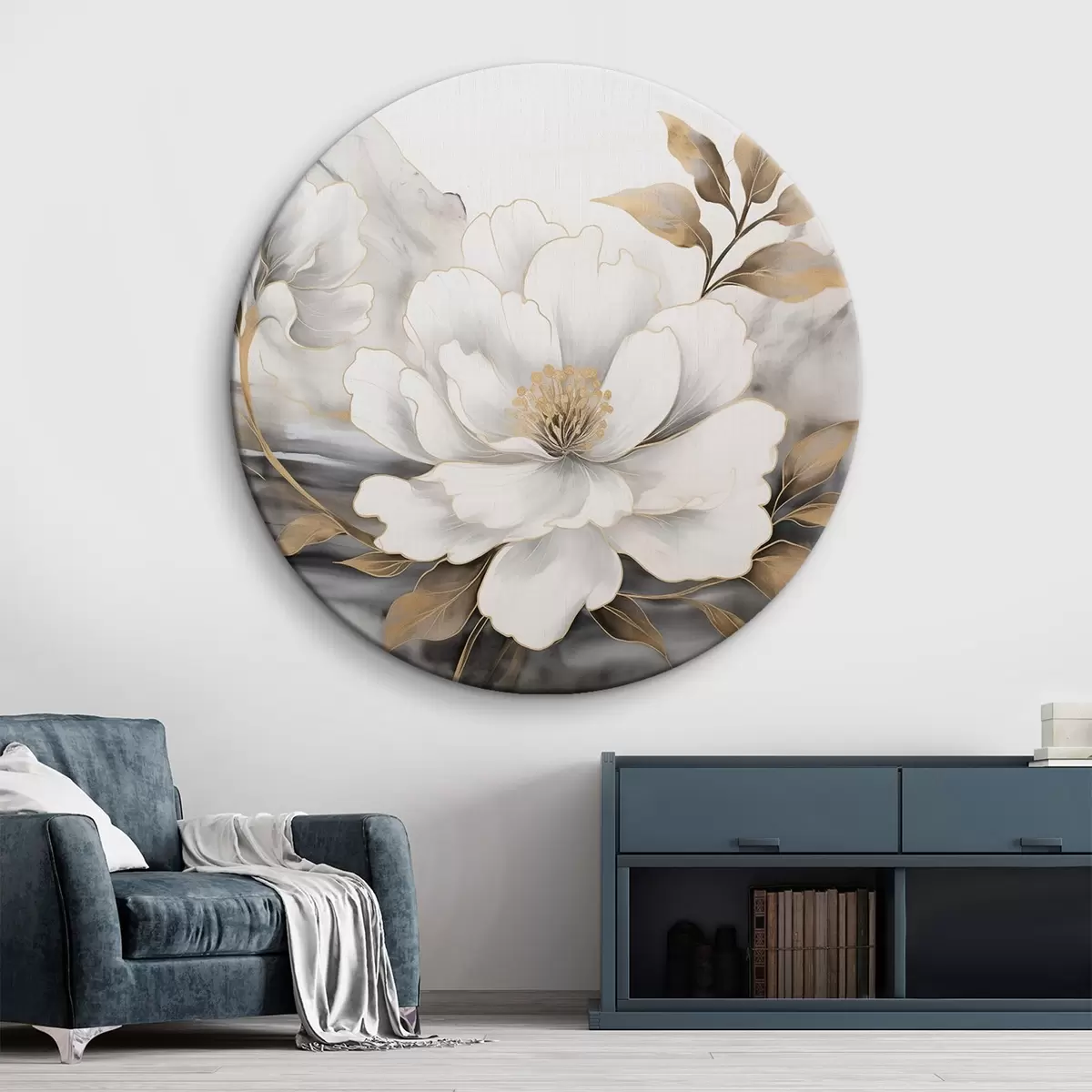 Okrągły obraz Duży abstrakcyjny kwiat na akwarelowym tle Nr r42966
