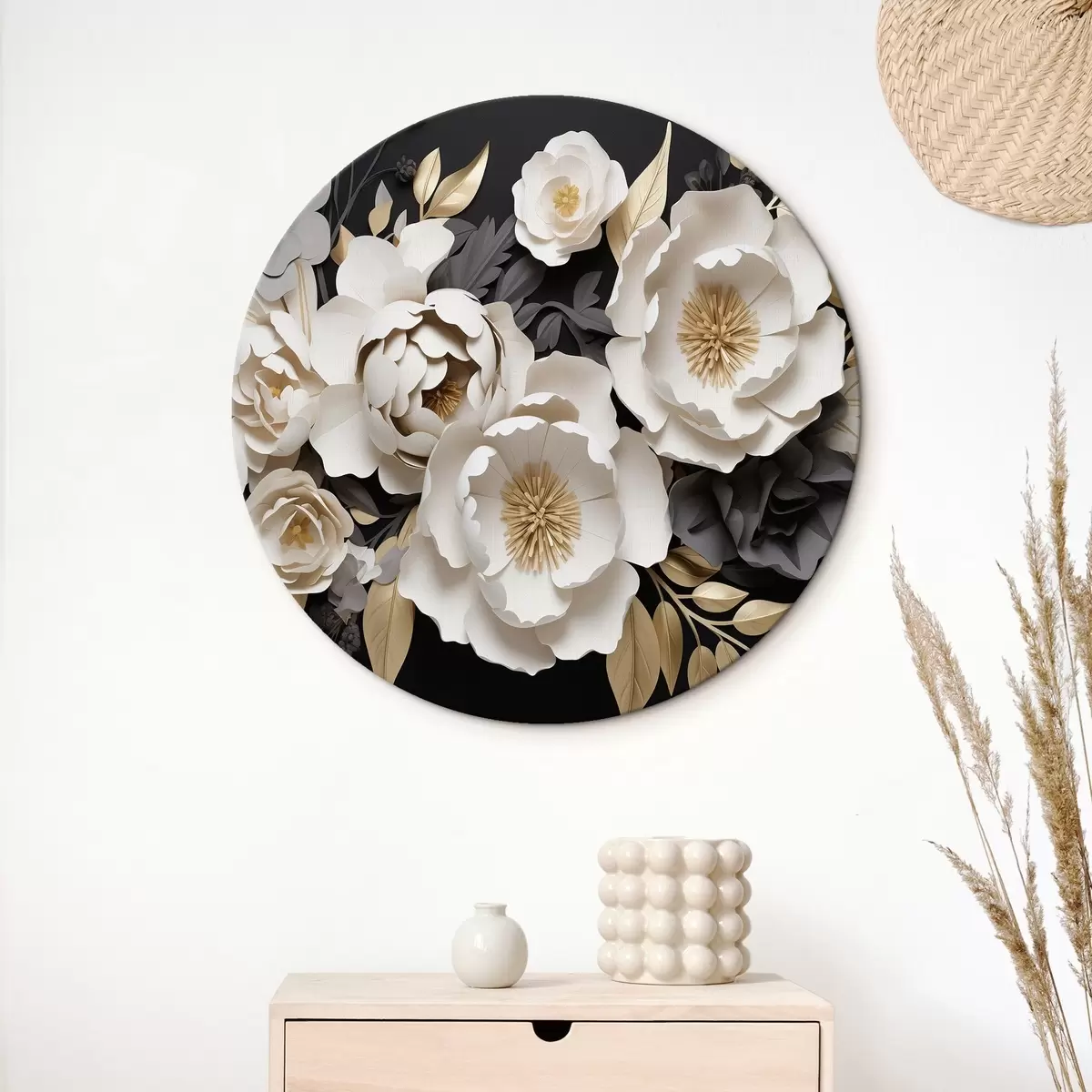 Okrągły obraz Wspaniałe kwiaty na ciemnym tle Nr r42969