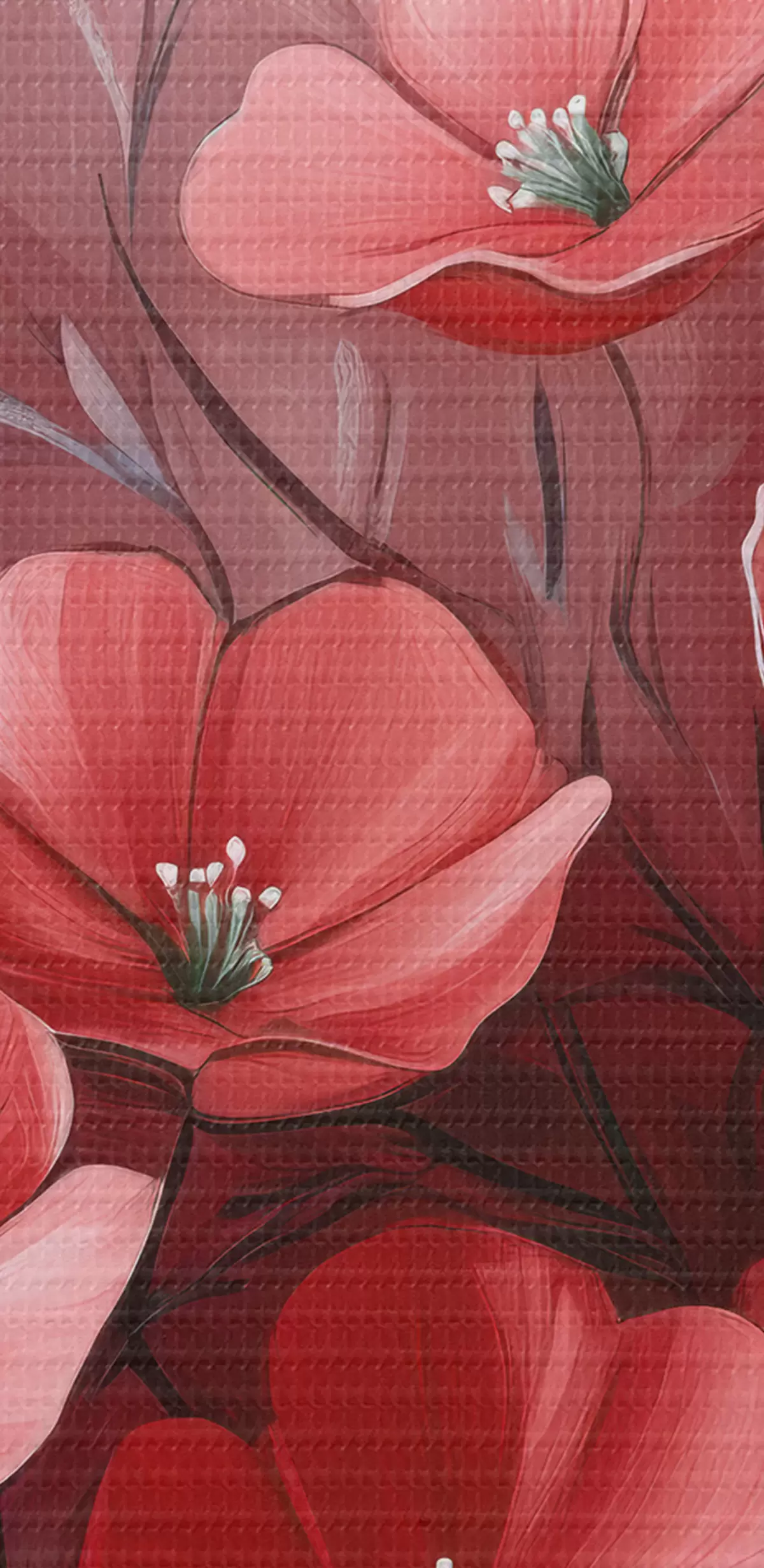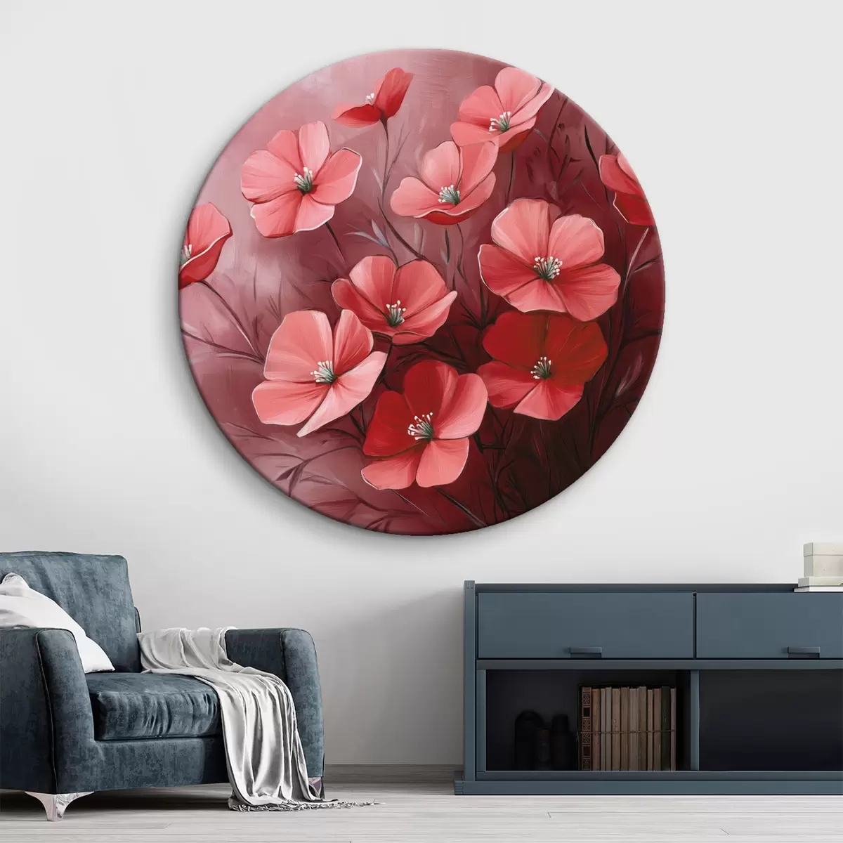 Okrągły obraz Czerwone kwiaty na czerwonym tle Nr r42970
