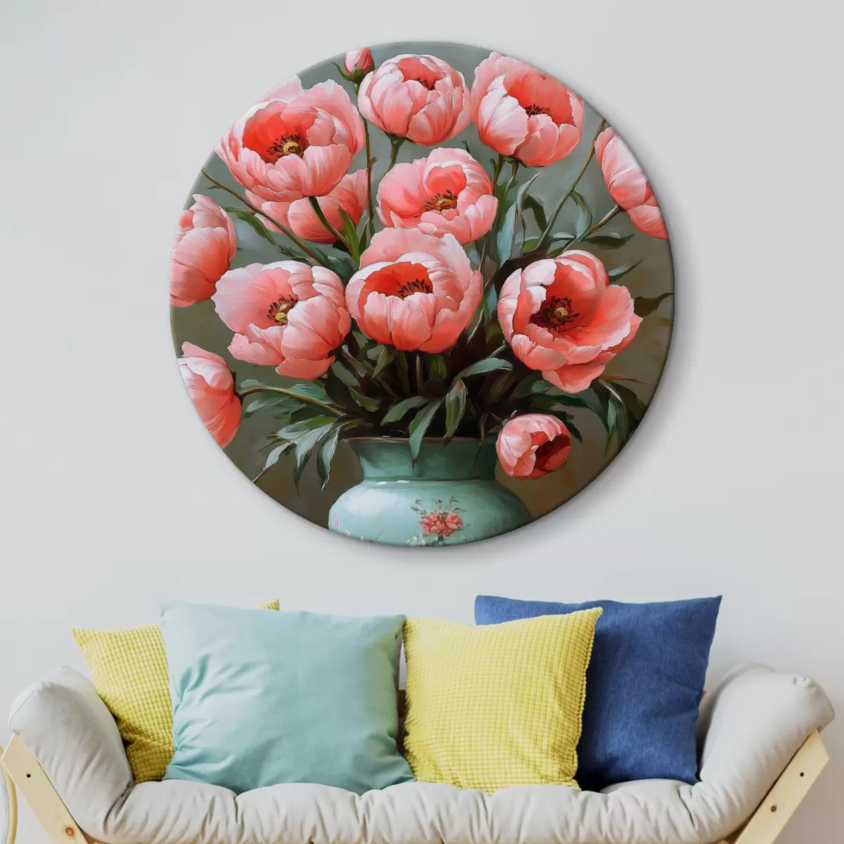 Okrągły obraz Bujne różowe kwiaty w wazonie Nr r42979
