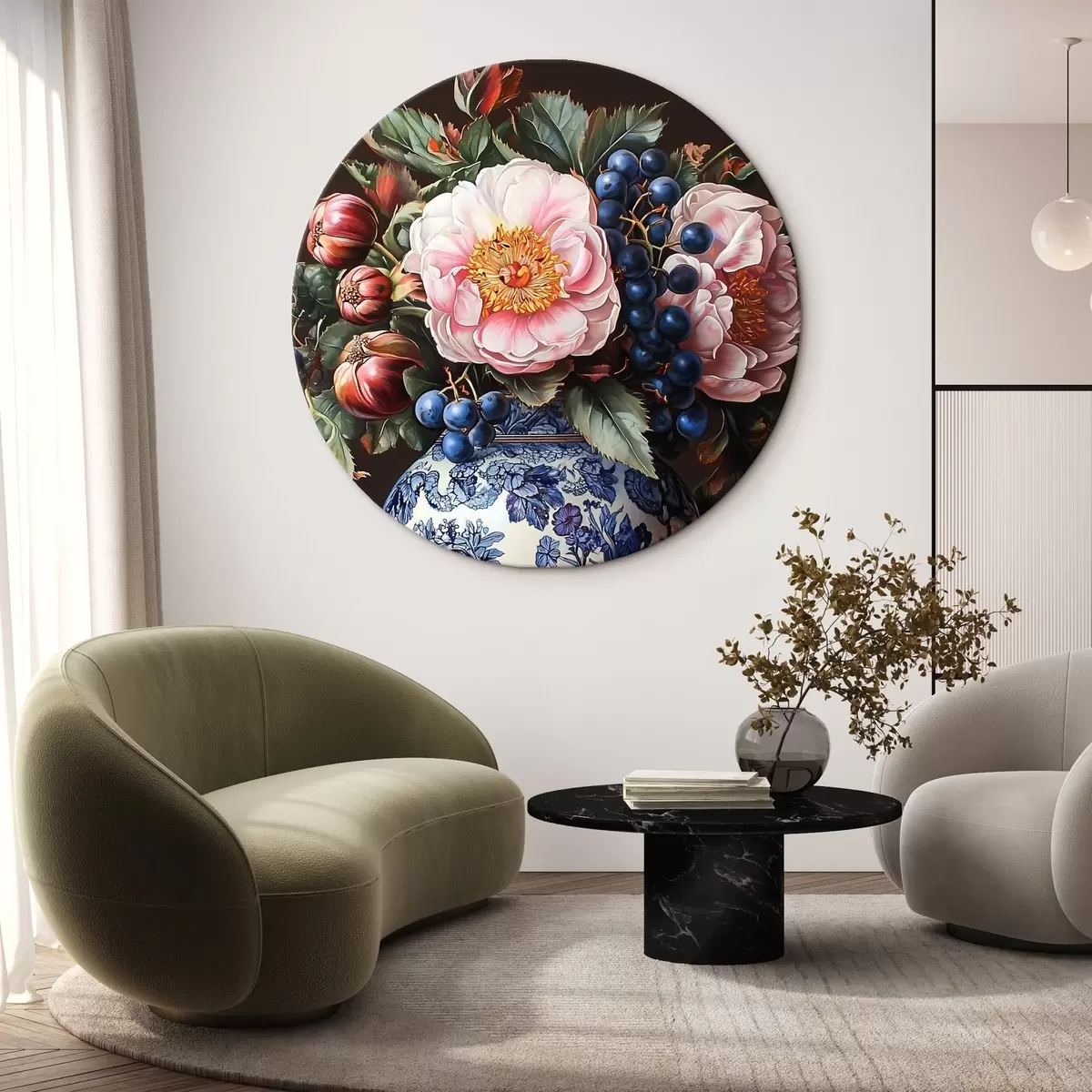 Okrągłe obrazy Bukiet kwiatów i owoców r42980