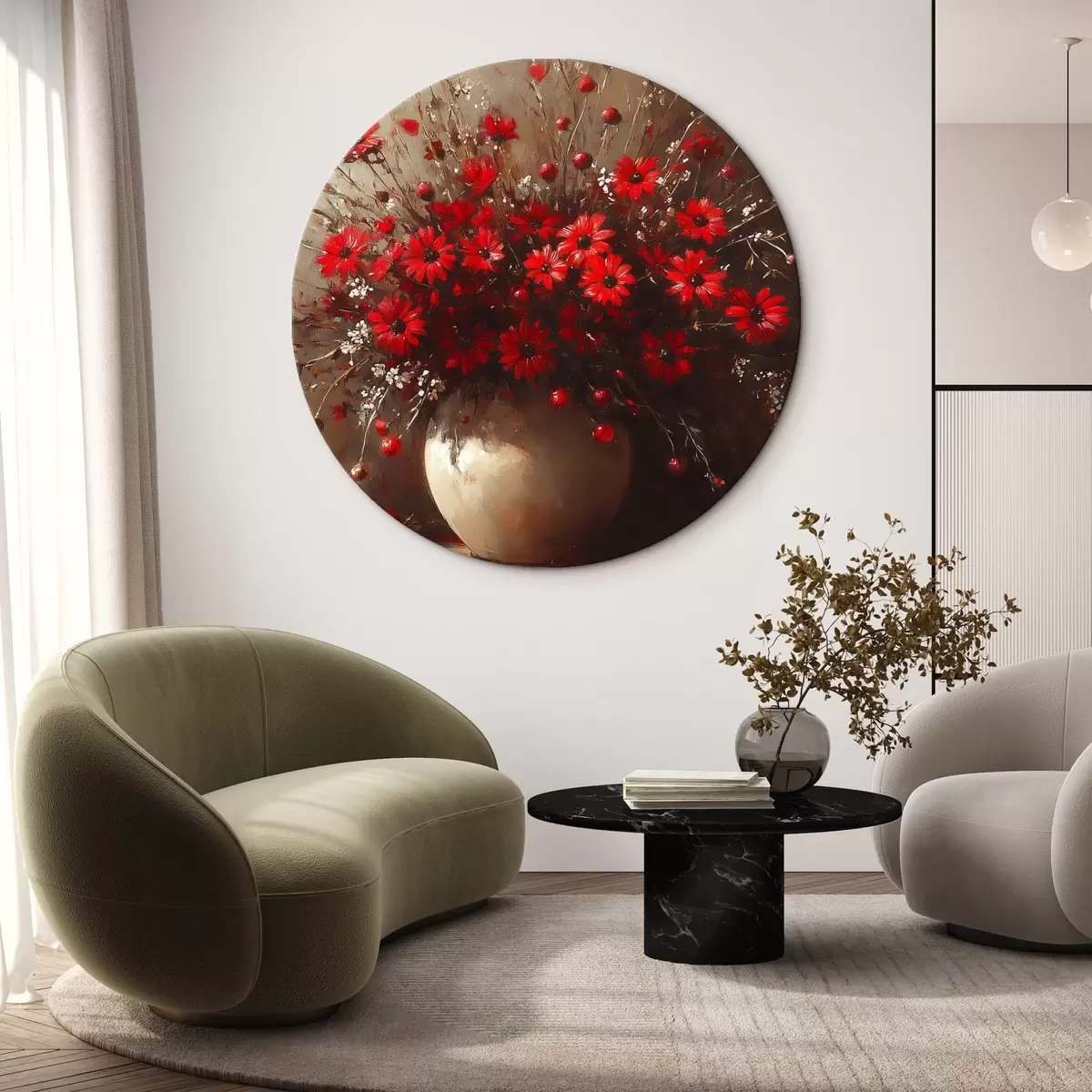 Okrągły obraz Czerwony bukiet w wazonie Nr r42983