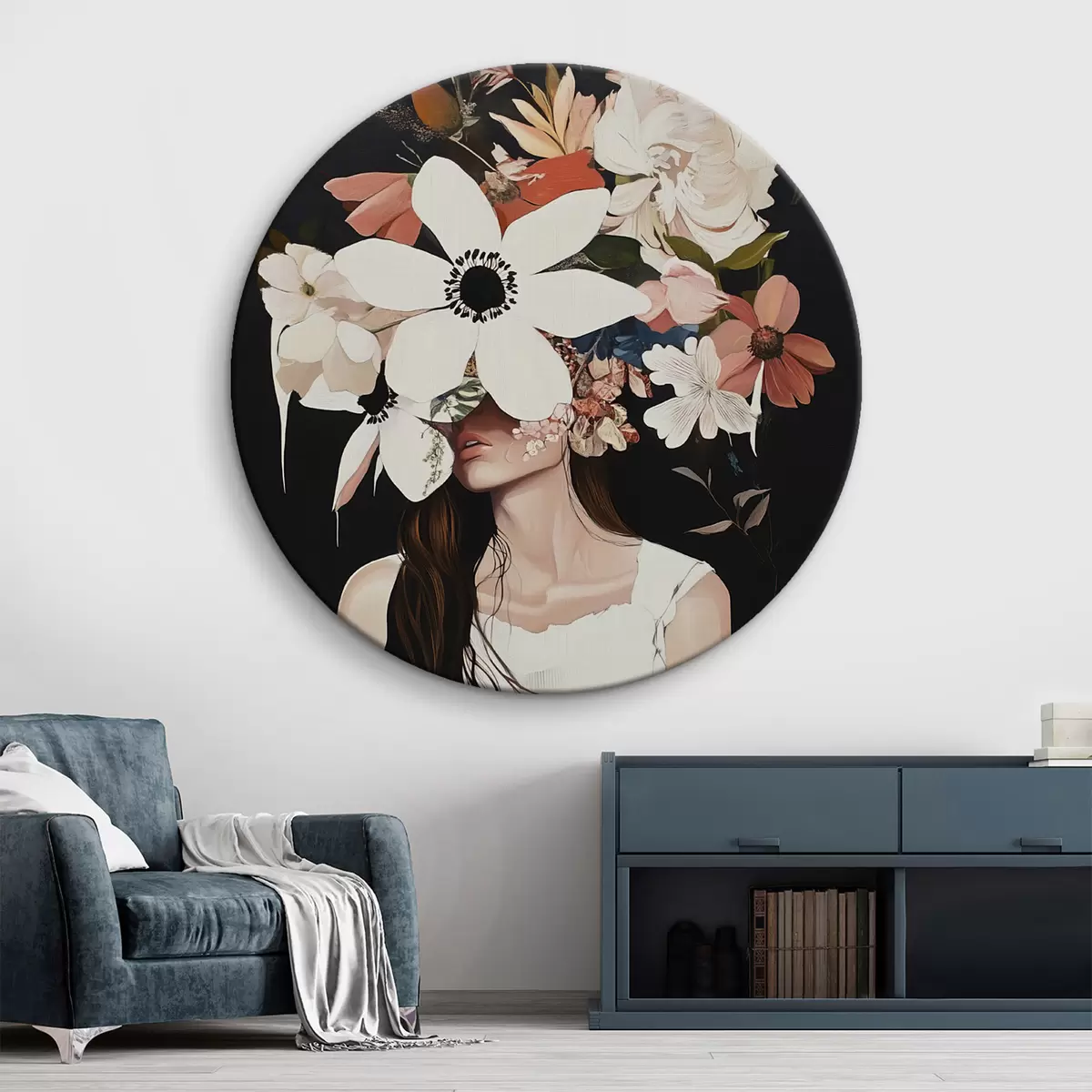 Okrągły obraz Dziewczyna z kwiatami na twarzy Nr r42989