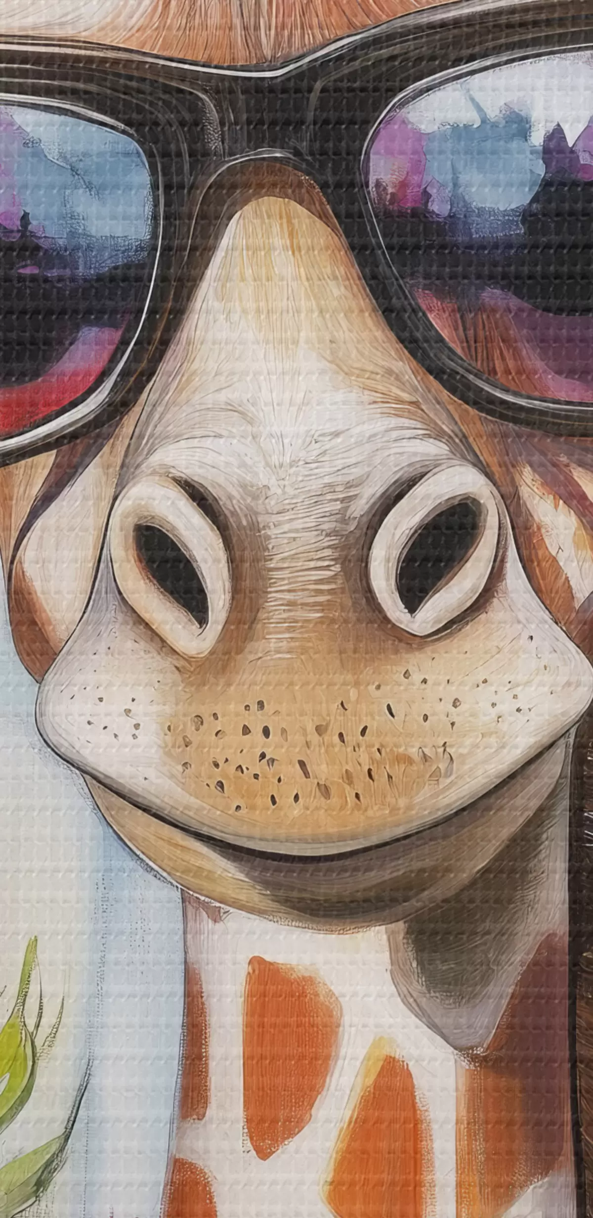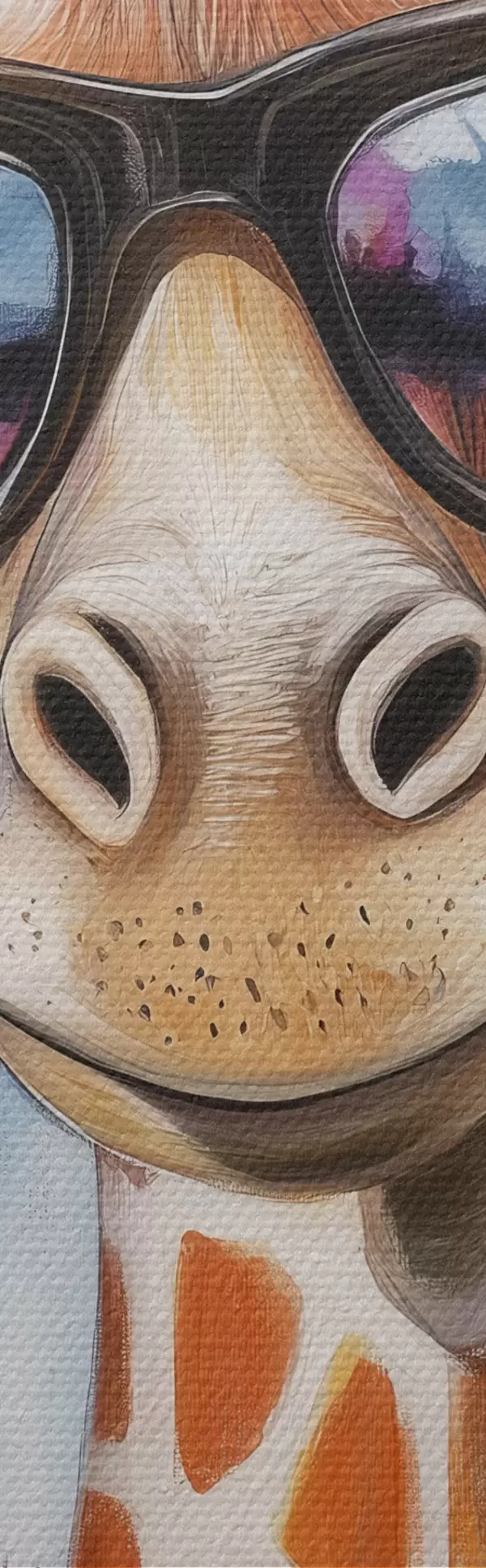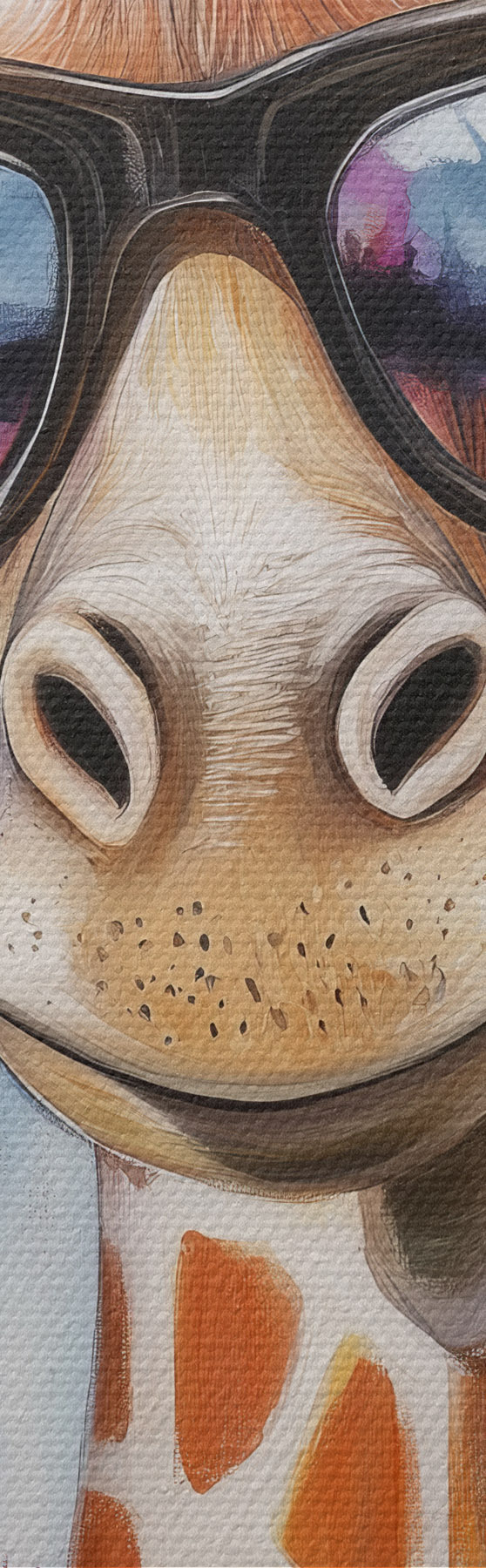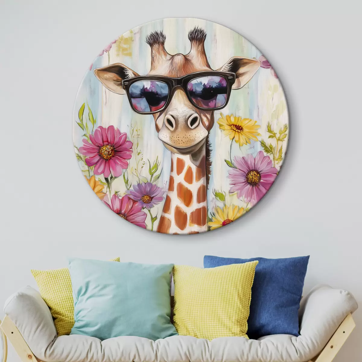 Okrągły obraz Żyrafa w okularach w pobliżu kwiatów Nr r42991