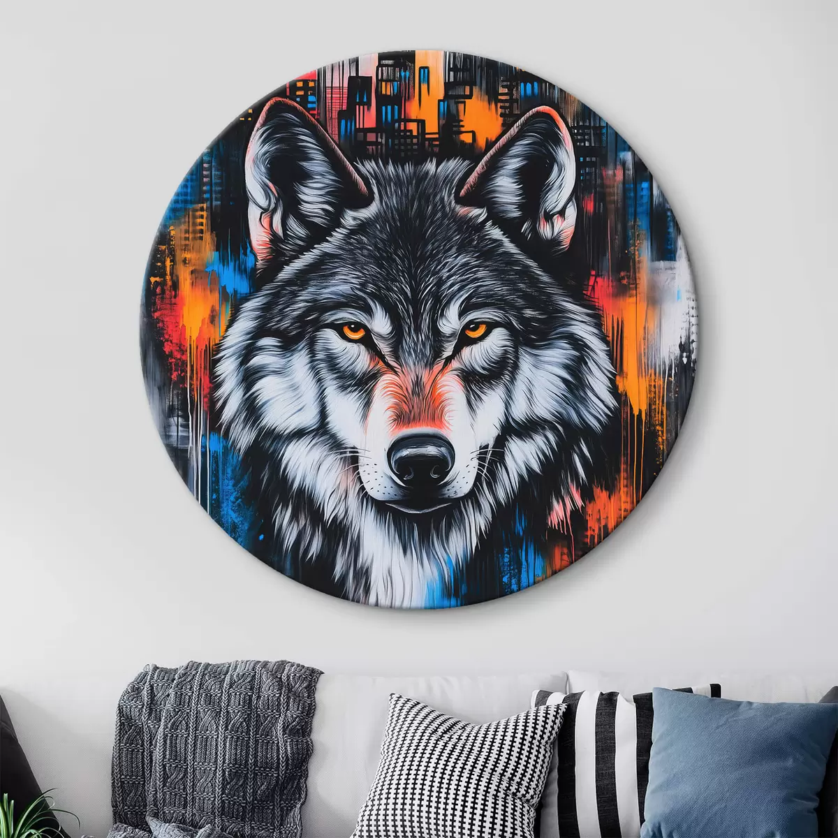 Okrągły obraz Wilk na tle miasta Nr r42994