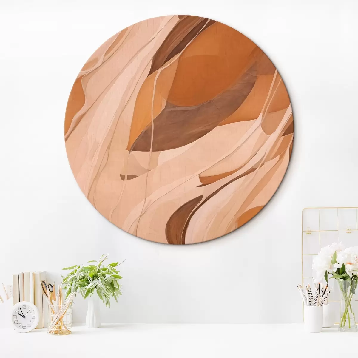 Okrągły obraz Abstrakcyjne gładkie linie w odcieniach brązu Nr r43006