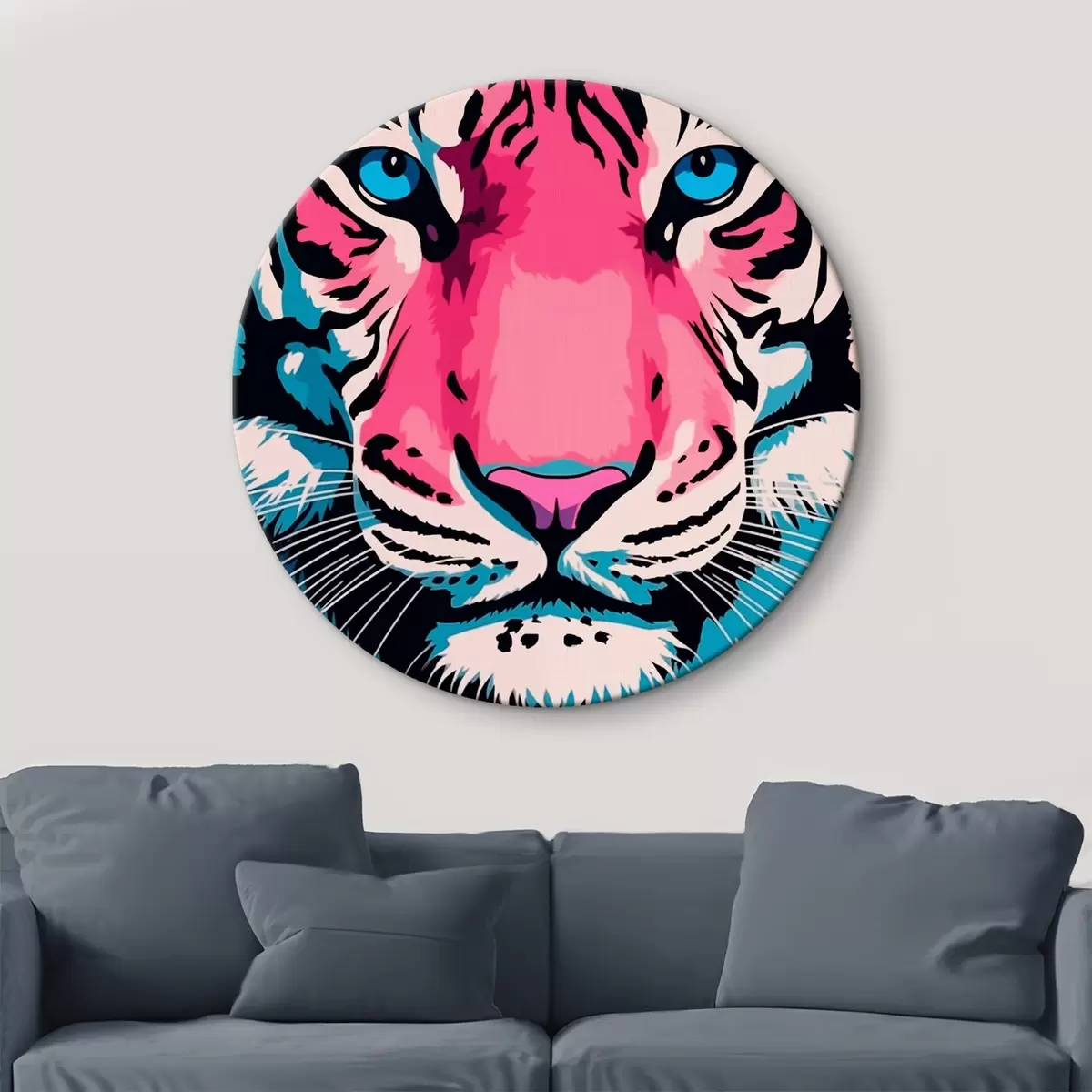 Okrągły obraz Stylizowany portret tygrysa w jasnych kolorach Nr r43007