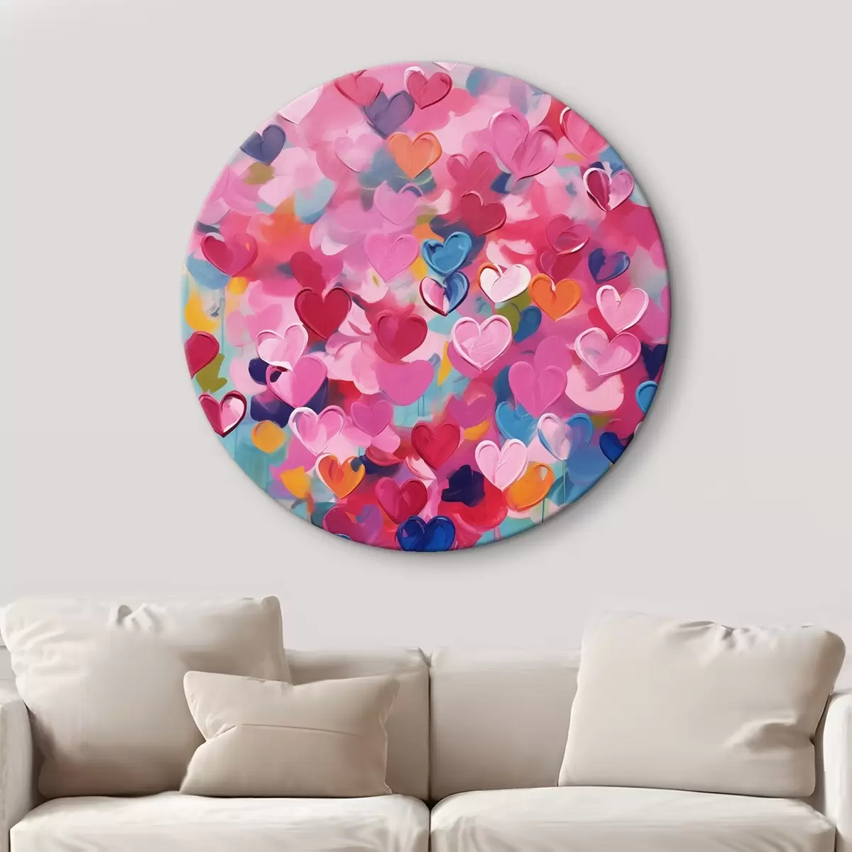 Okrągły obraz Kolorowe serca, imitacja farby Nr r43033