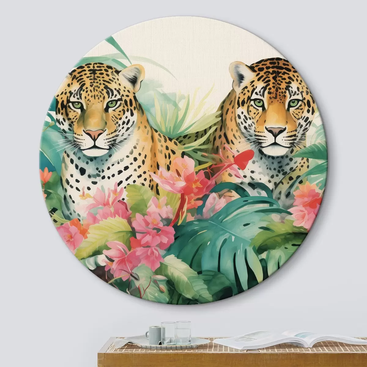 Okrągłe obrazy Para lampartów w tropikalnych zaroślach r43036
