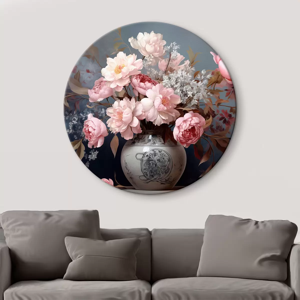 Okrągły obraz Vintage wazon z kwiatami Nr r43038
