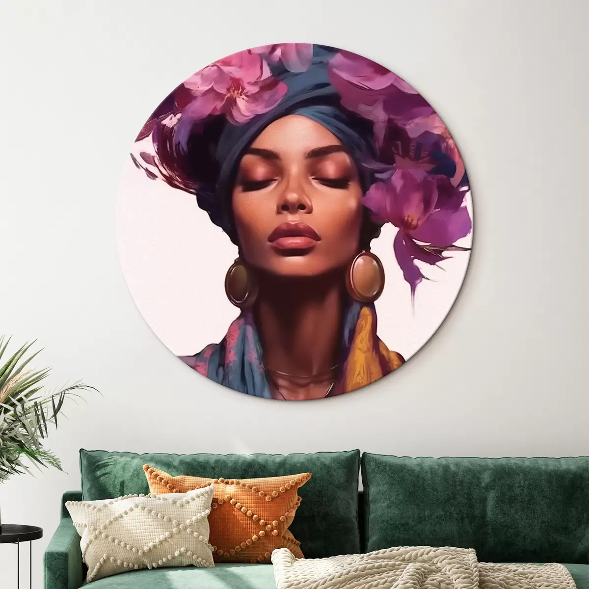 Okrągły obraz Piękna kobieta z kwiatami Nr r43040