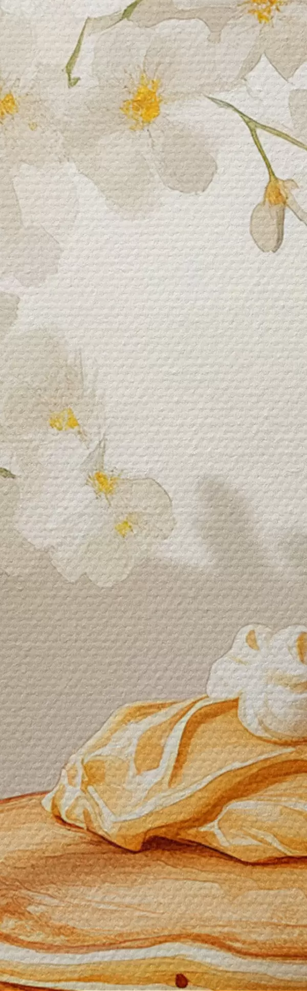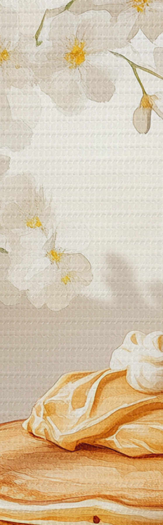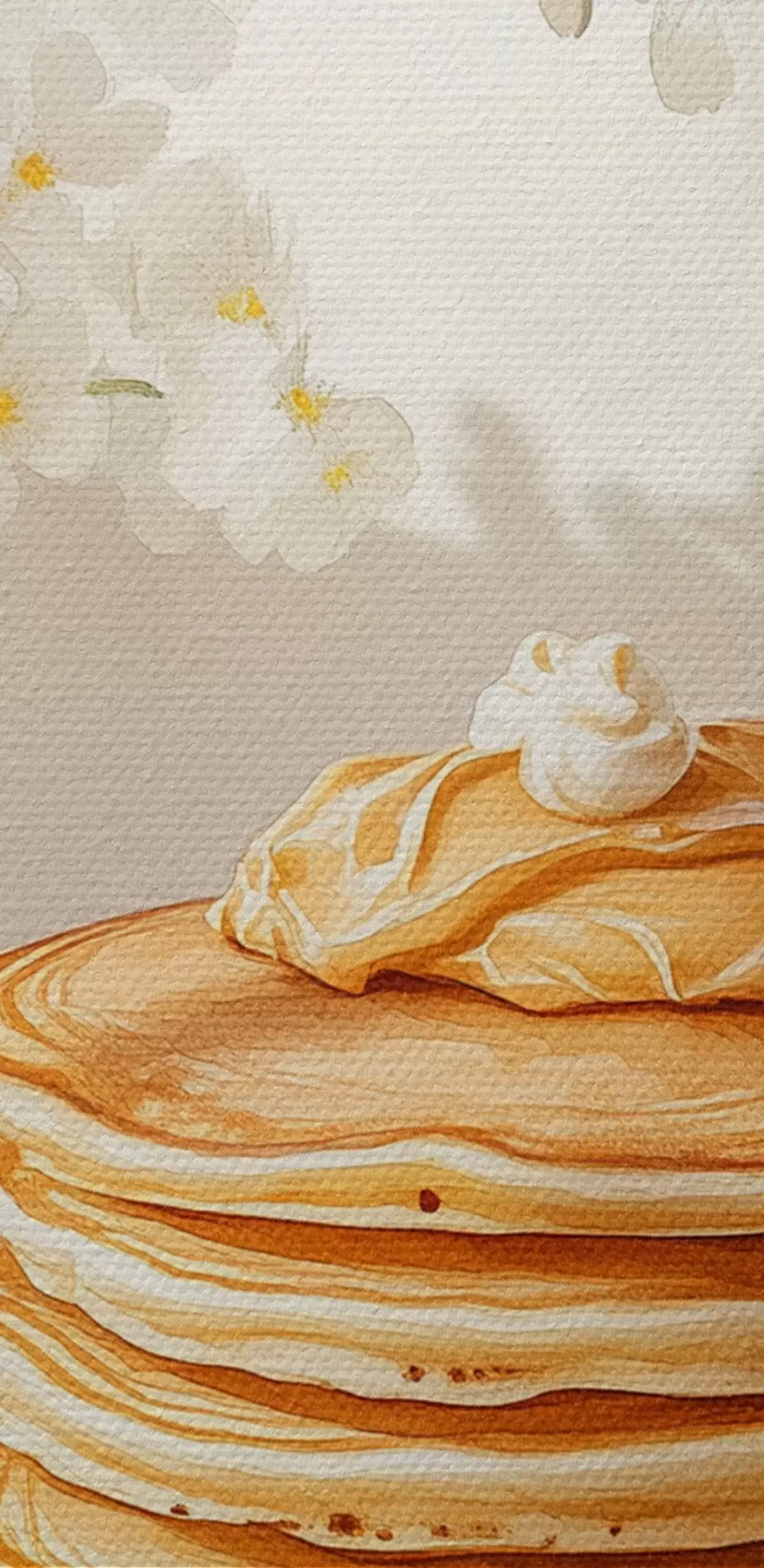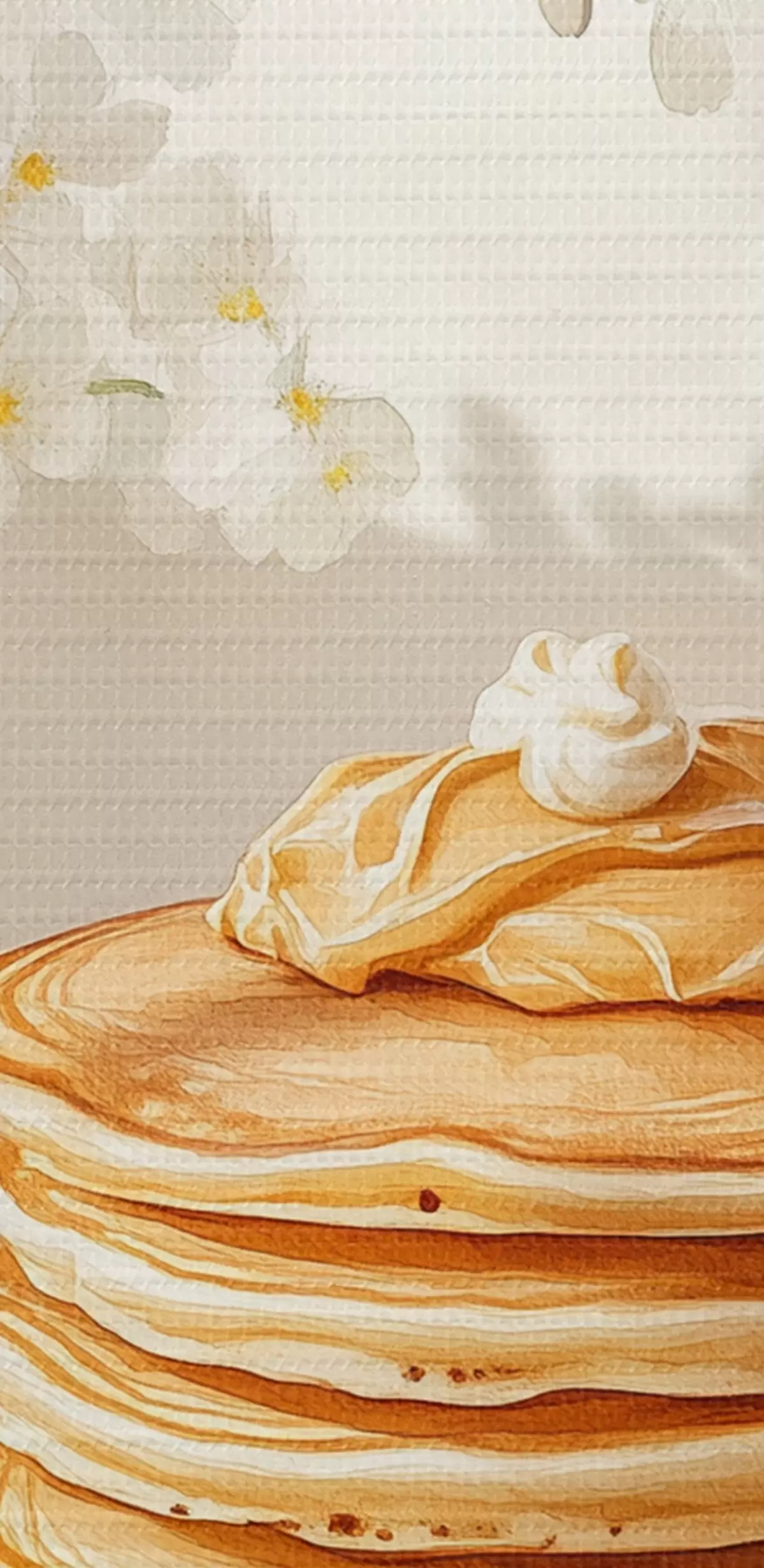 Okrągły obraz Pyszne naleśniki z masłem orzechowym, akwarela, wazon z białymi kwiatami Nr r43063