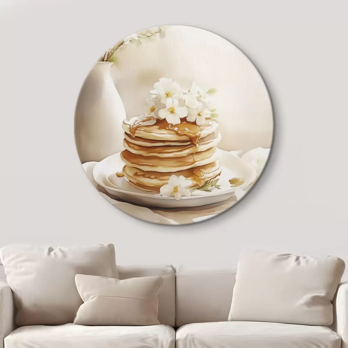 Okrągły obraz Naleśniki z masłem orzechowym, białe kwiaty, rysunek akwarelą Nr r43065