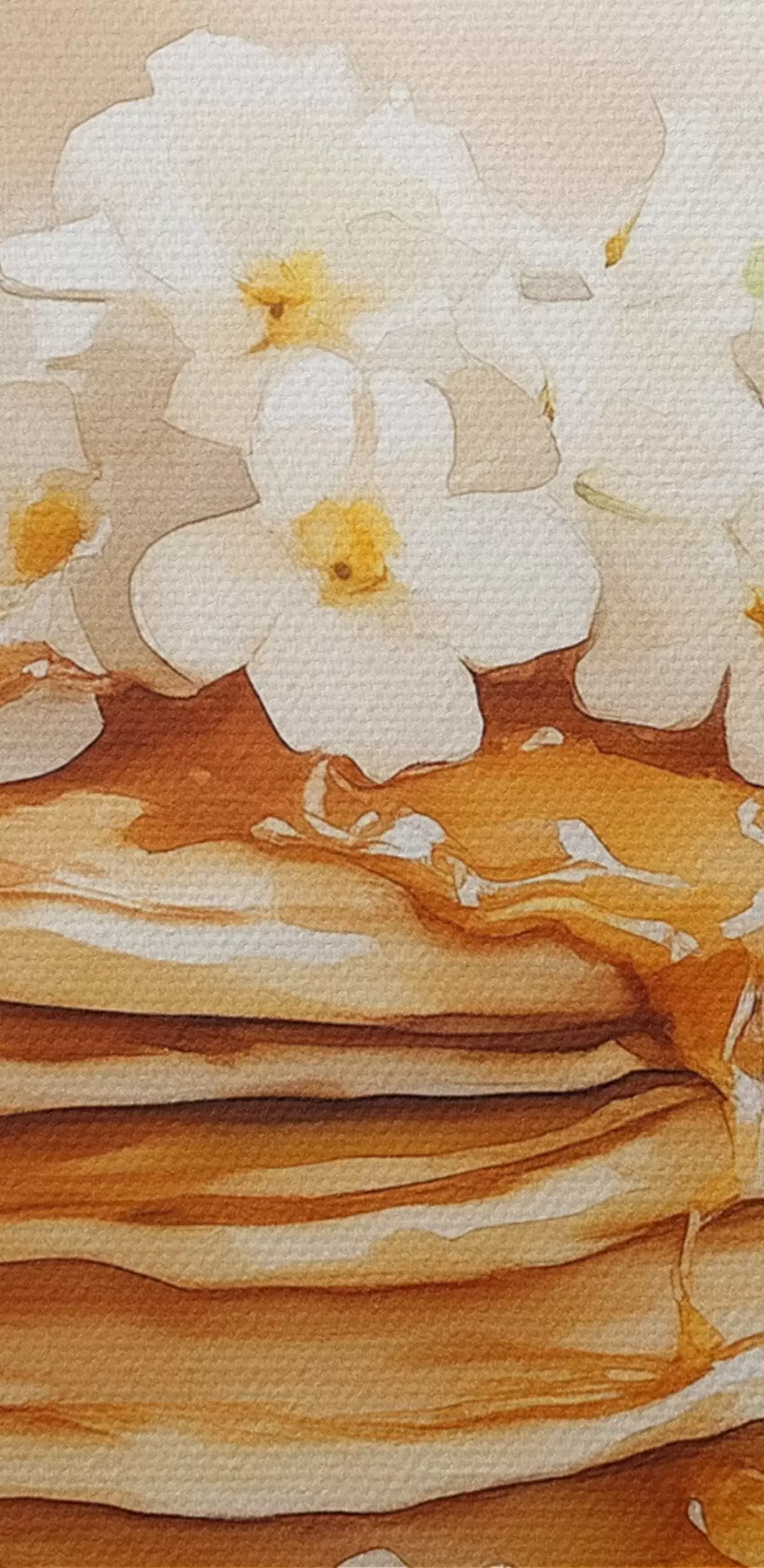 Okrągłe obrazy Naleśniki z masłem orzechowym, białe kwiaty, rysunek akwarelą r43065