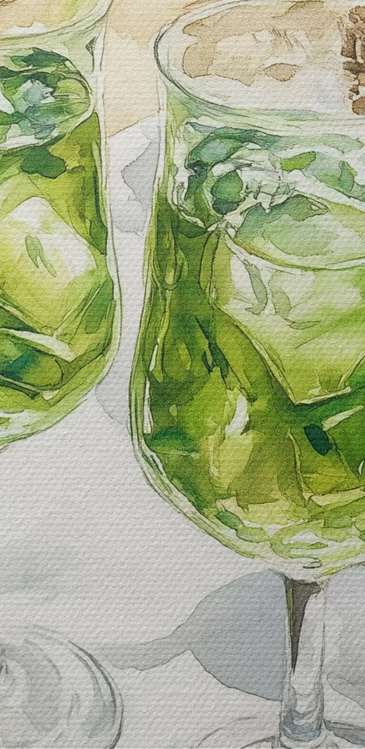 Okrągły obraz Koktajle na plaży, rysunek w stylu akwareli, ocean, lato Nr r43067