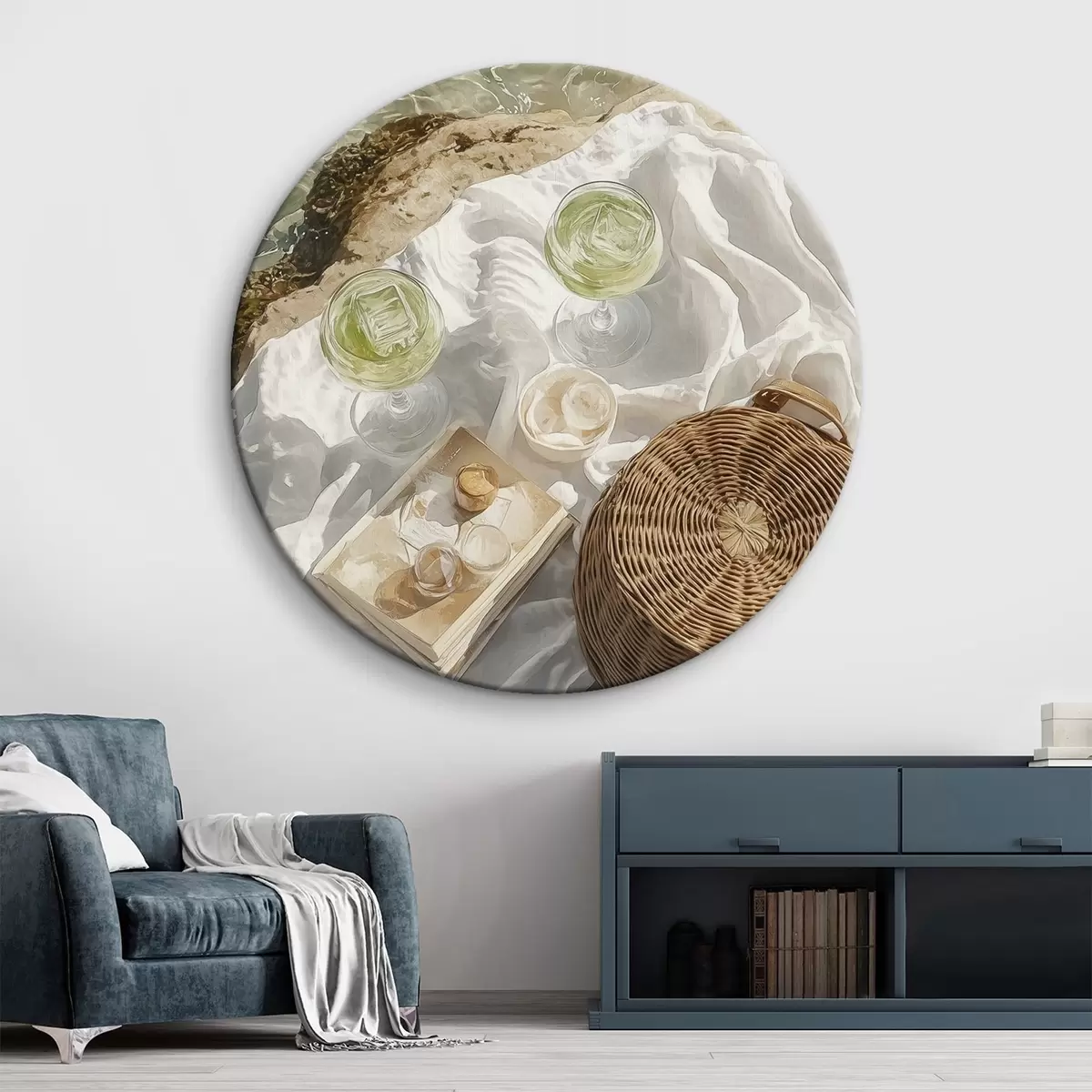 Okrągłe obrazy Letnia estetyka, fale oceanu, plaża, koktajle, styl akwareli r43069