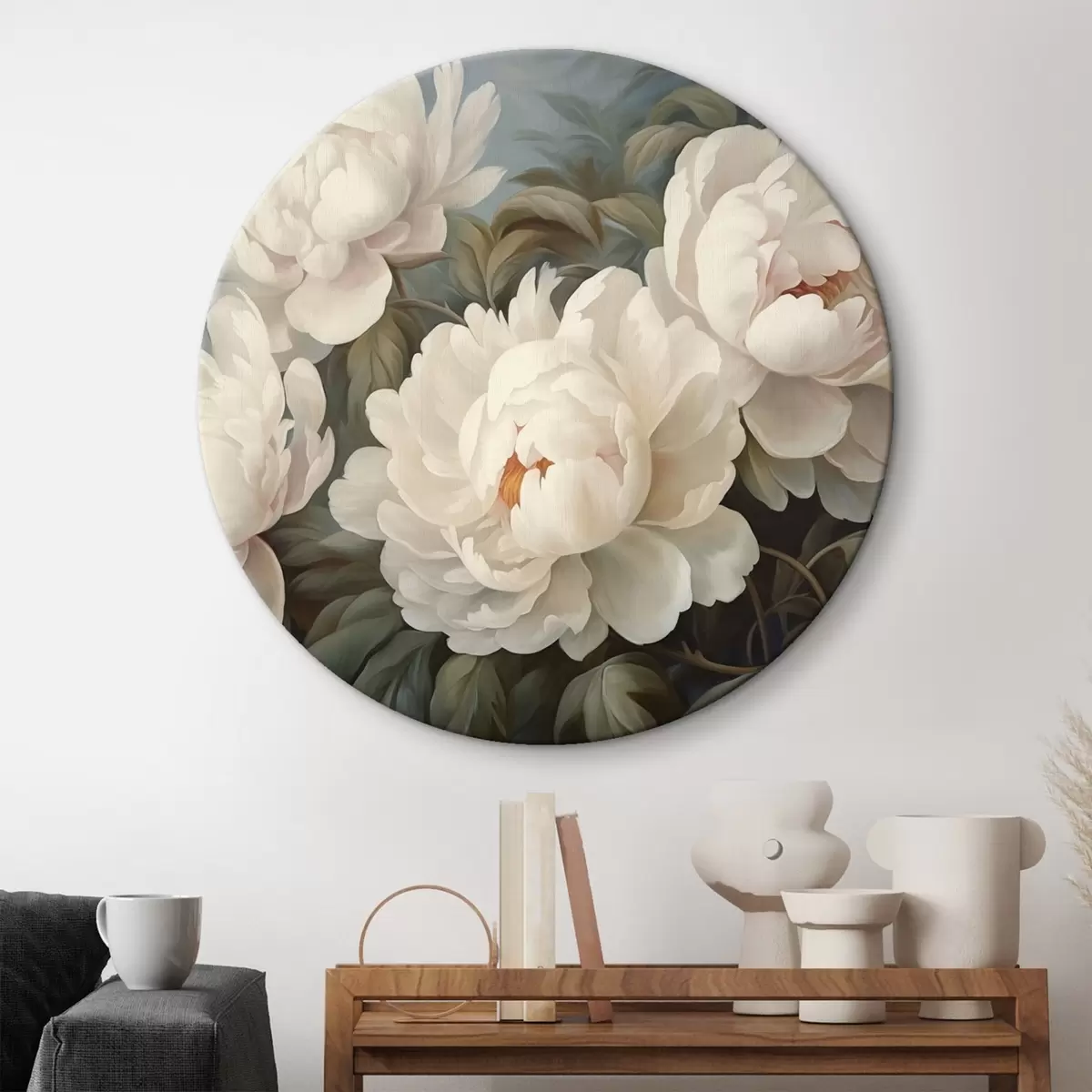 Okrągłe obrazy Białe kwiaty i liście we mgle r43091