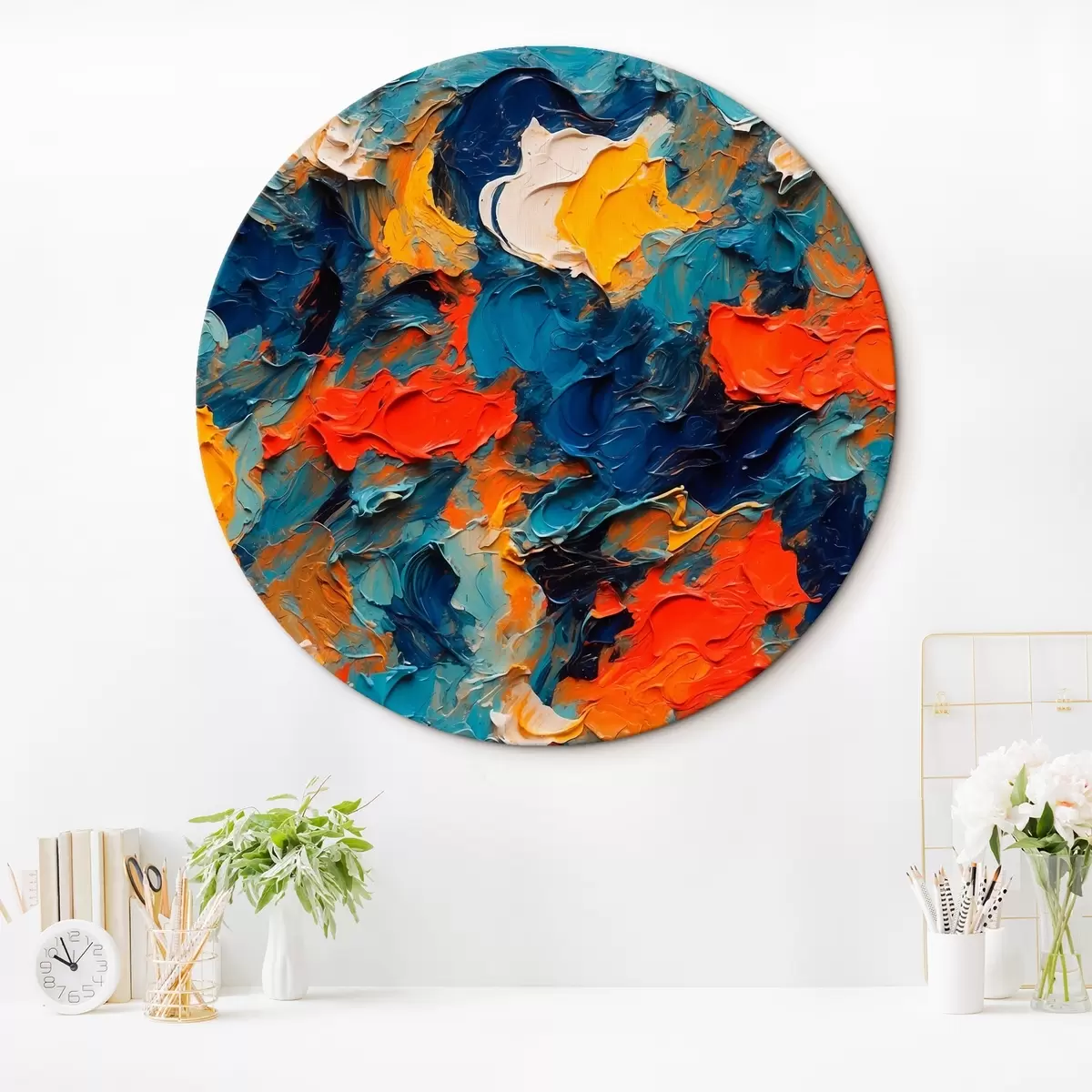 Okrągły obraz Obraz abstrakcyjny w stylu malarstwa olejnego w kolorach białym, niebieskim i czerwonym Nr r43093
