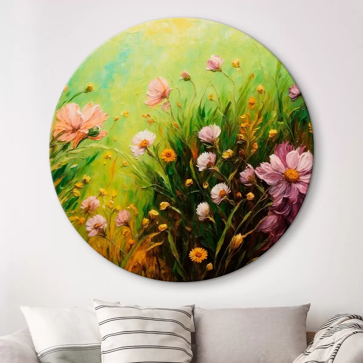 Okrągły obraz Pole kwiatów na abstrakcyjnym zielonym tle Nr r43101