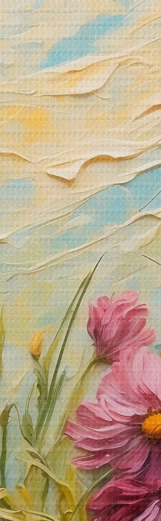 Drobny splot nici na tym płótnie przypomina powierzchnię profesjonalnych płócien artystycznych.