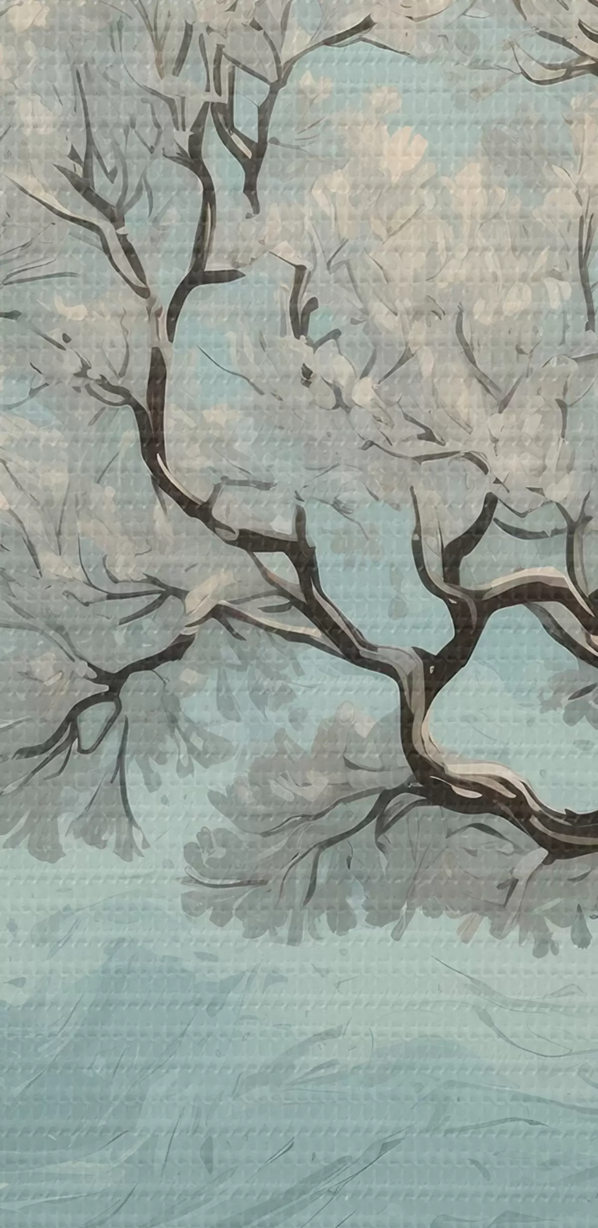 Okrągły obraz Białe drzewa w stylu malarstwa akrylowego Nr r43112