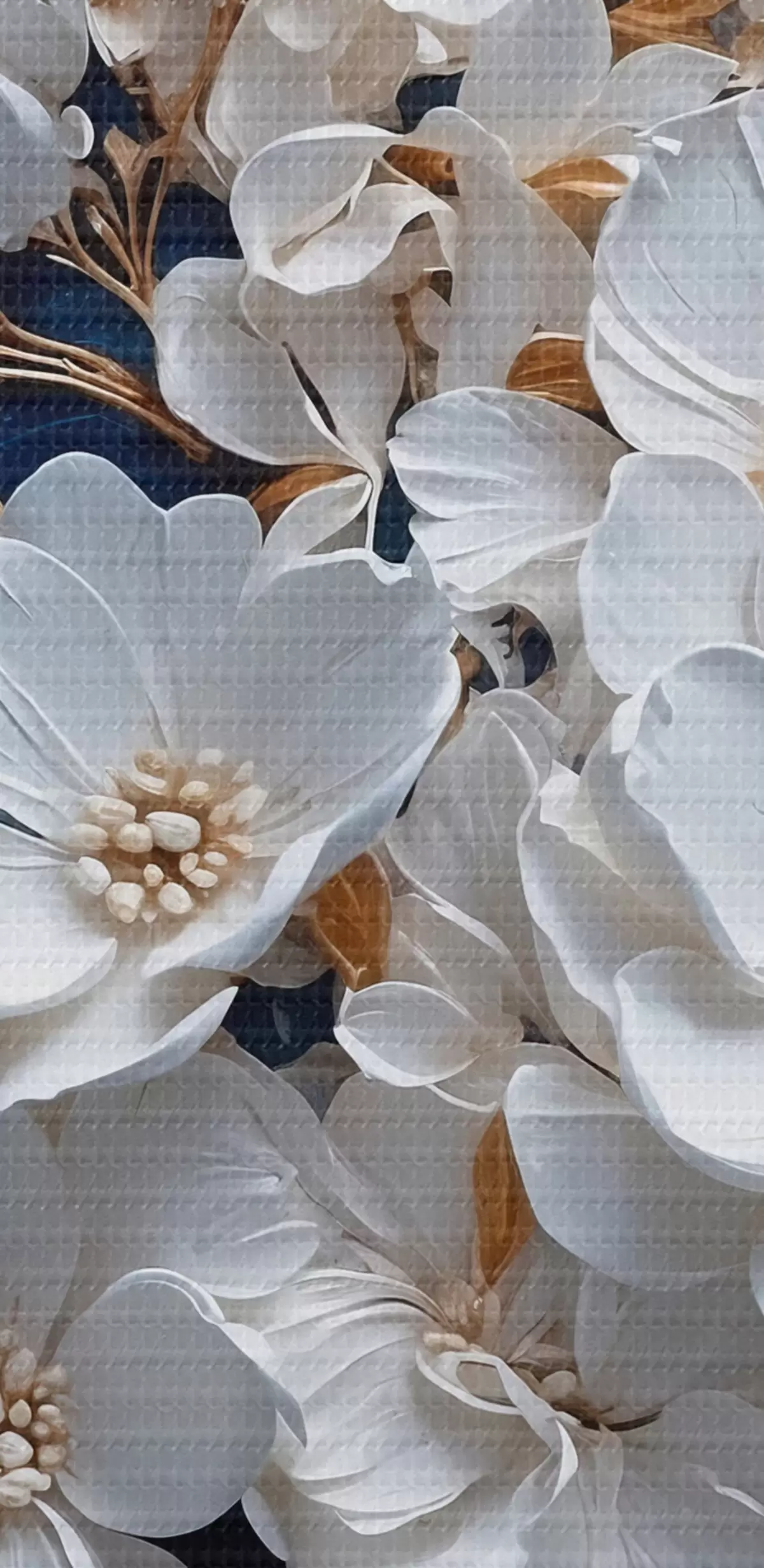 Okrągły obraz Białe kwiaty na niebieskim tle Nr r43116