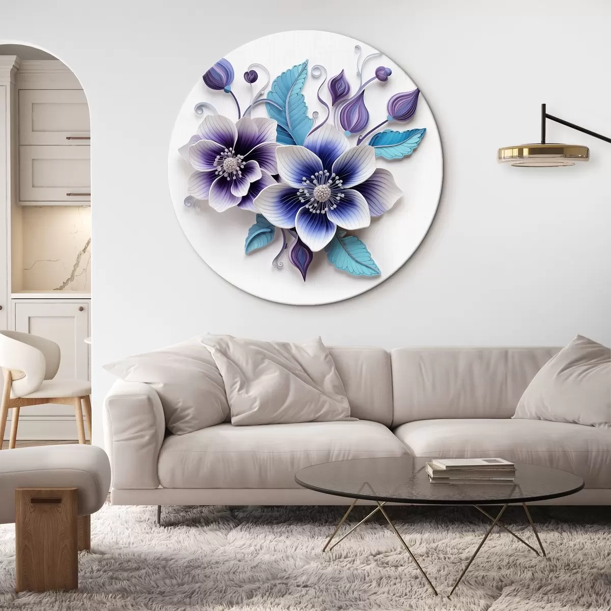 Okrągły obraz Delikatne niebieskie kwiaty Nr r43125