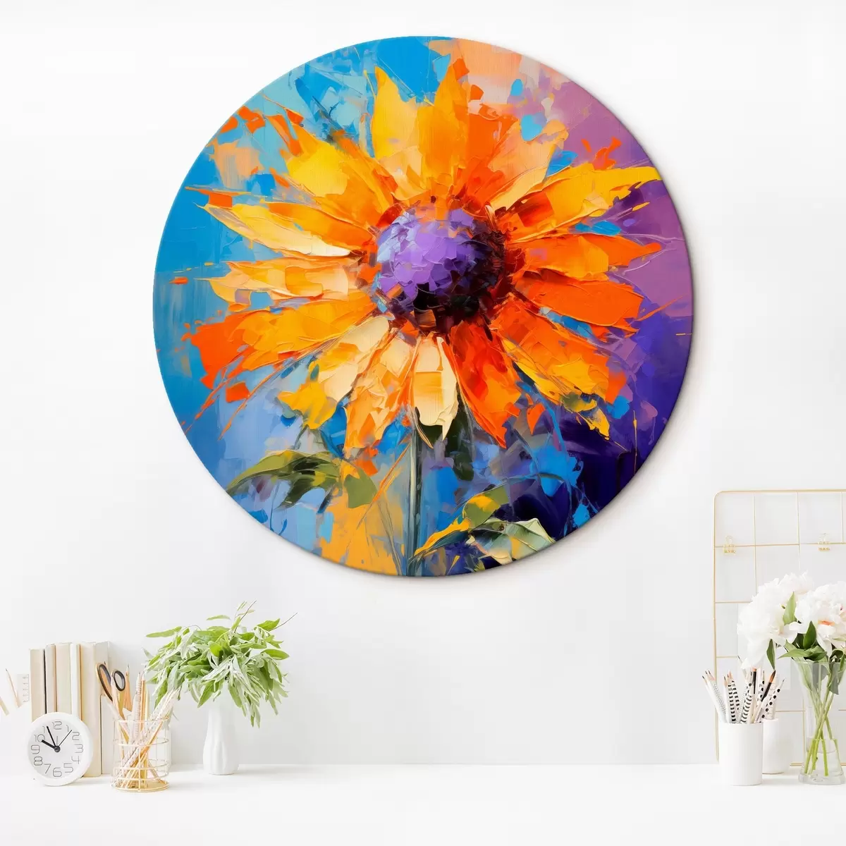 Okrągły obraz Żywy słonecznik w stylu malarstwa abstrakcyjnego Nr r43133