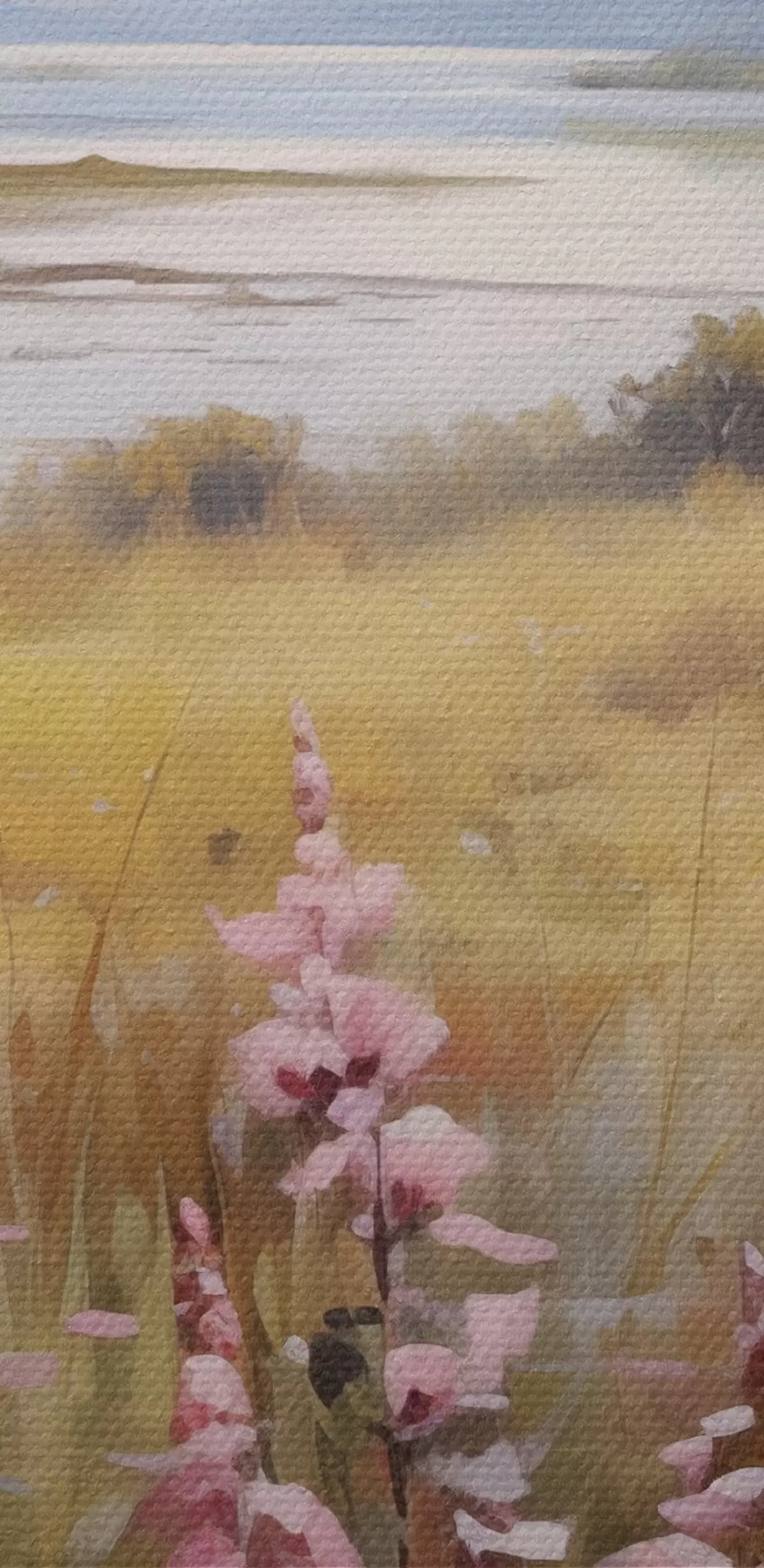 Drobny splot nici na tym płótnie przypomina powierzchnię profesjonalnych płócien artystycznych.