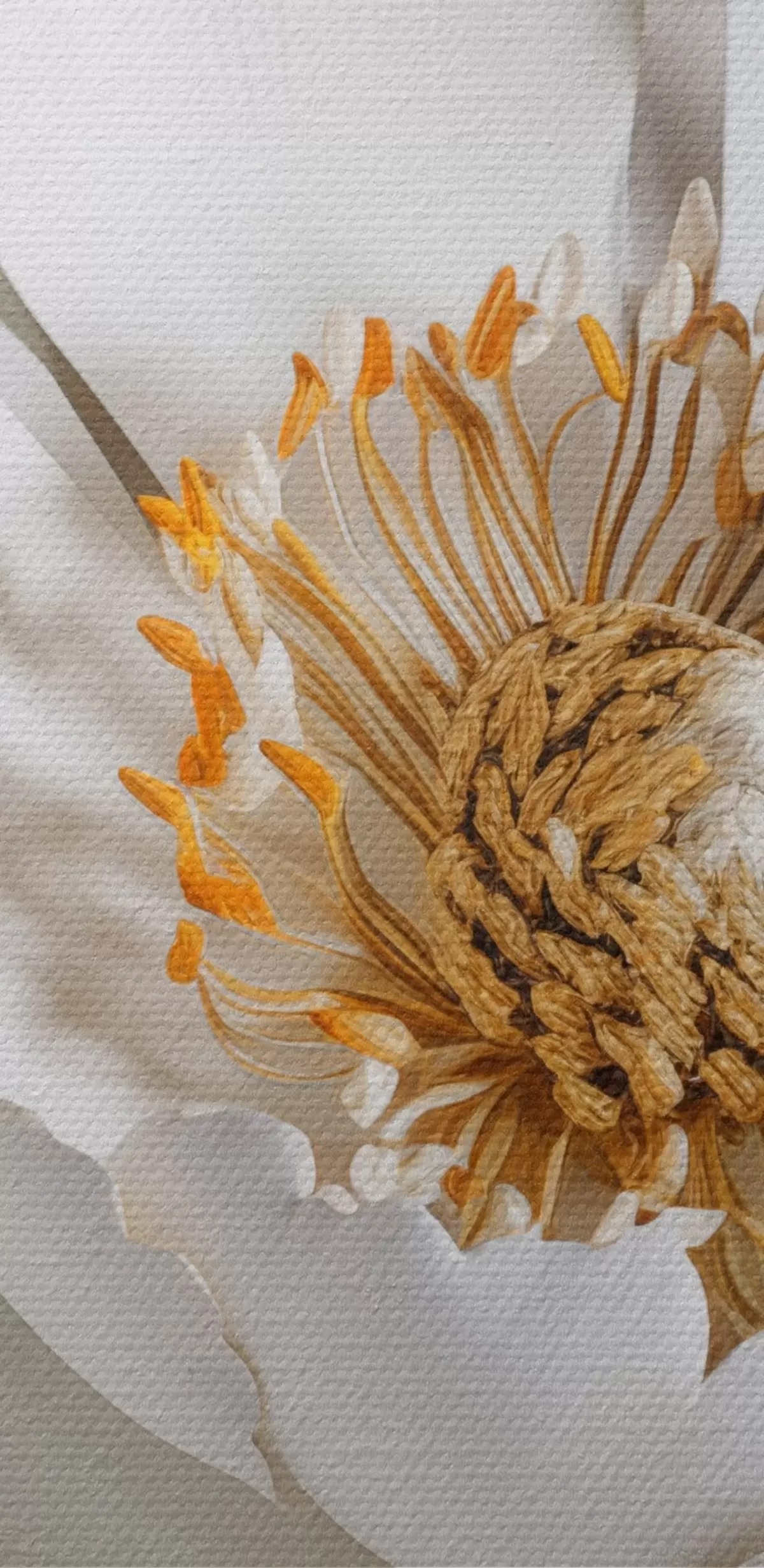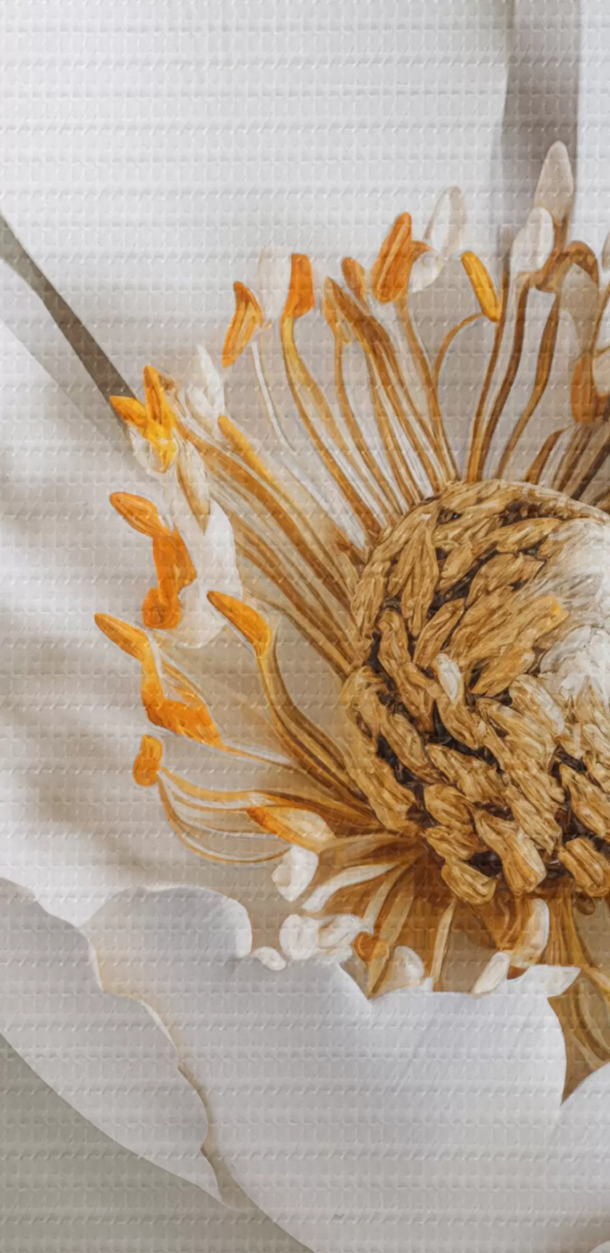 Drobny splot nici na tym płótnie przypomina powierzchnię profesjonalnych płócien artystycznych.