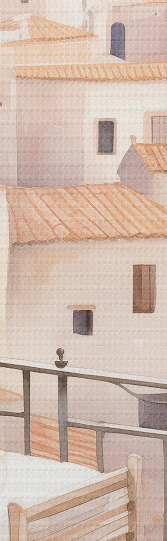 Okrągły obraz Zachód słońca na balkonie, Włochy, architektura, kwitnące kwiaty, styl akwareli Nr r43184