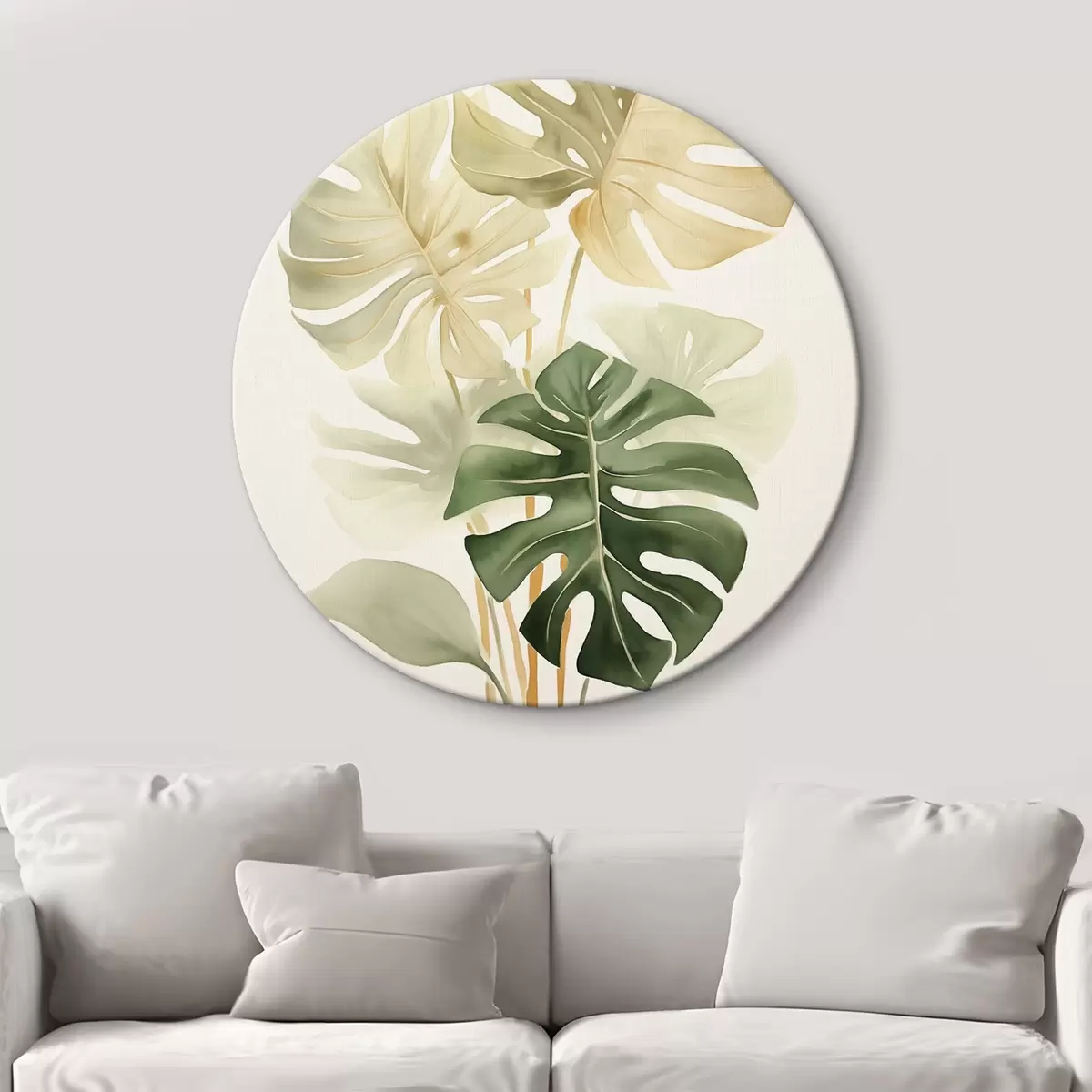 Okrągłe obrazy Liście Monstera, imitacja akwareli r43209