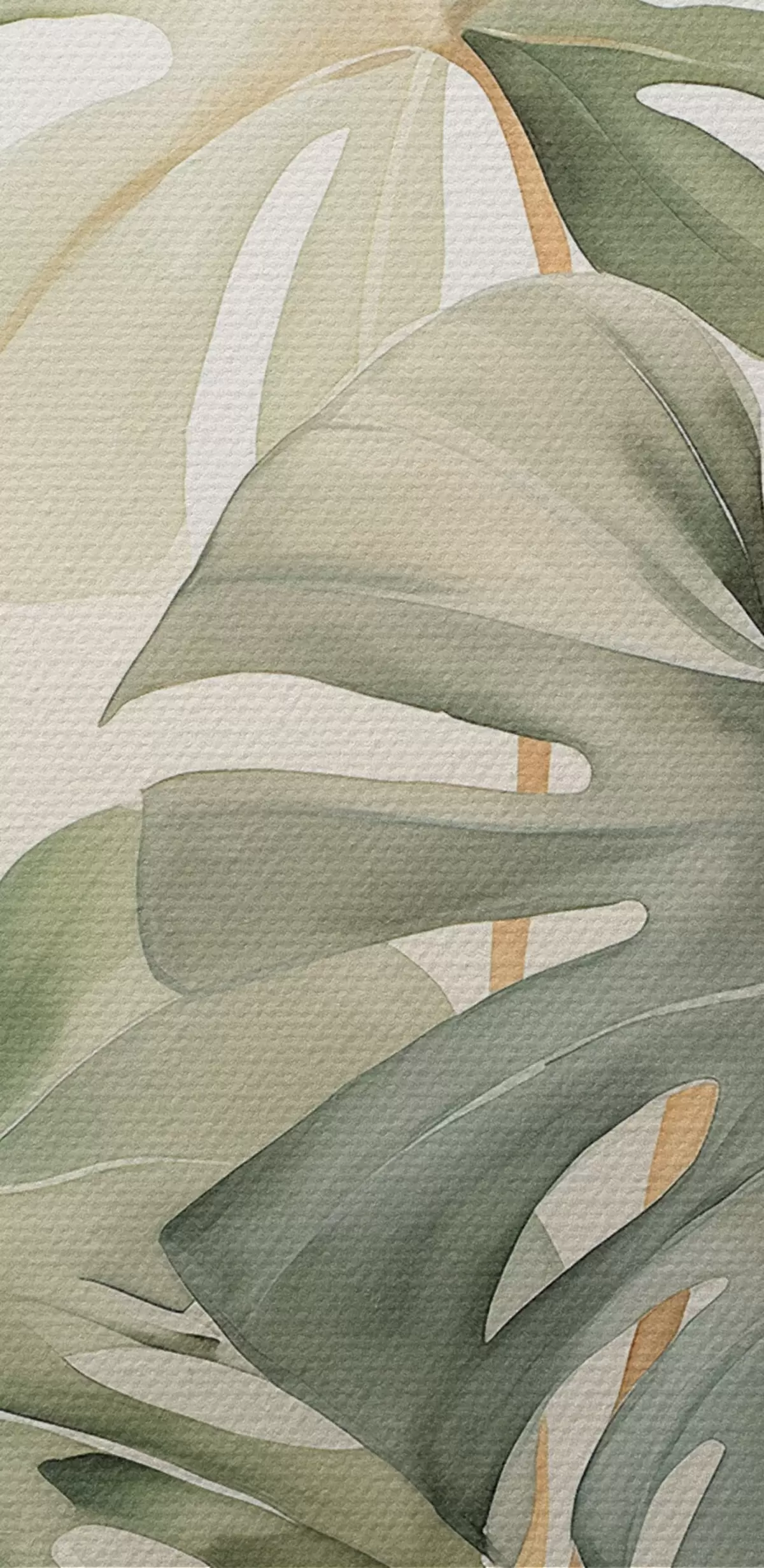 Okrągły obraz Liście monstery w technice akwareli Nr r43210