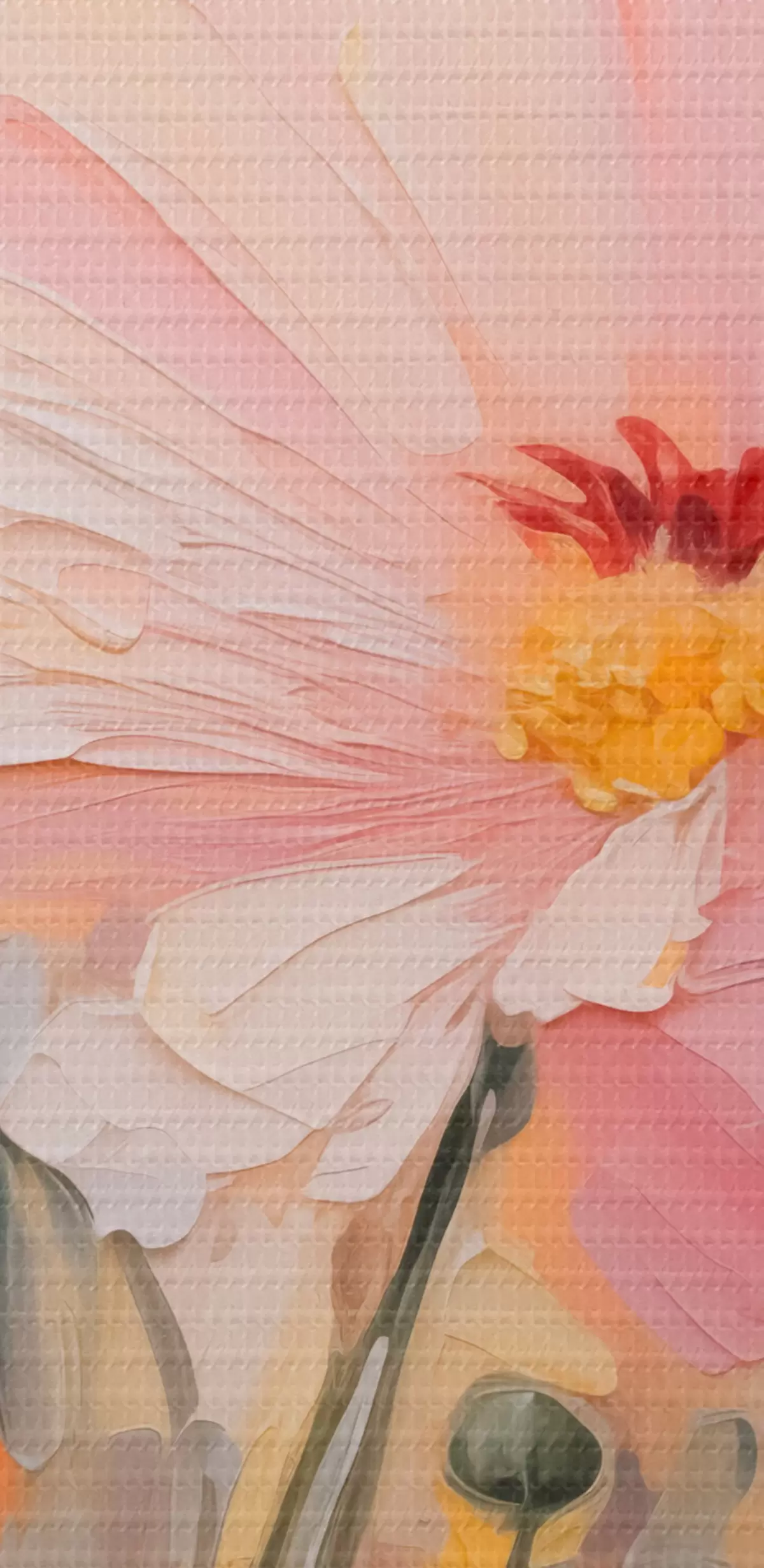 Drobny splot nici na tym płótnie przypomina powierzchnię profesjonalnych płócien artystycznych.