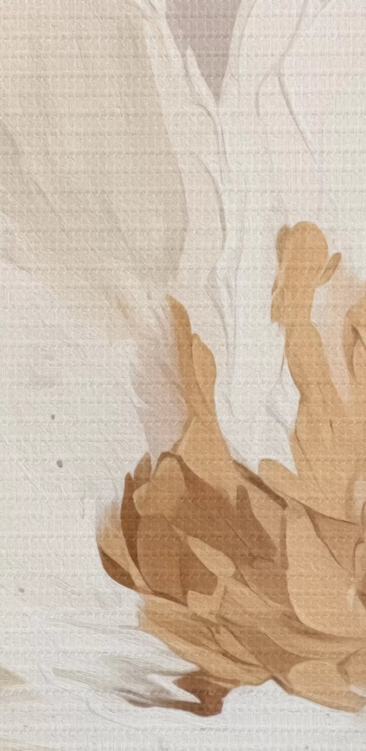 Drobny splot nici na tym płótnie przypomina powierzchnię profesjonalnych płócien artystycznych.